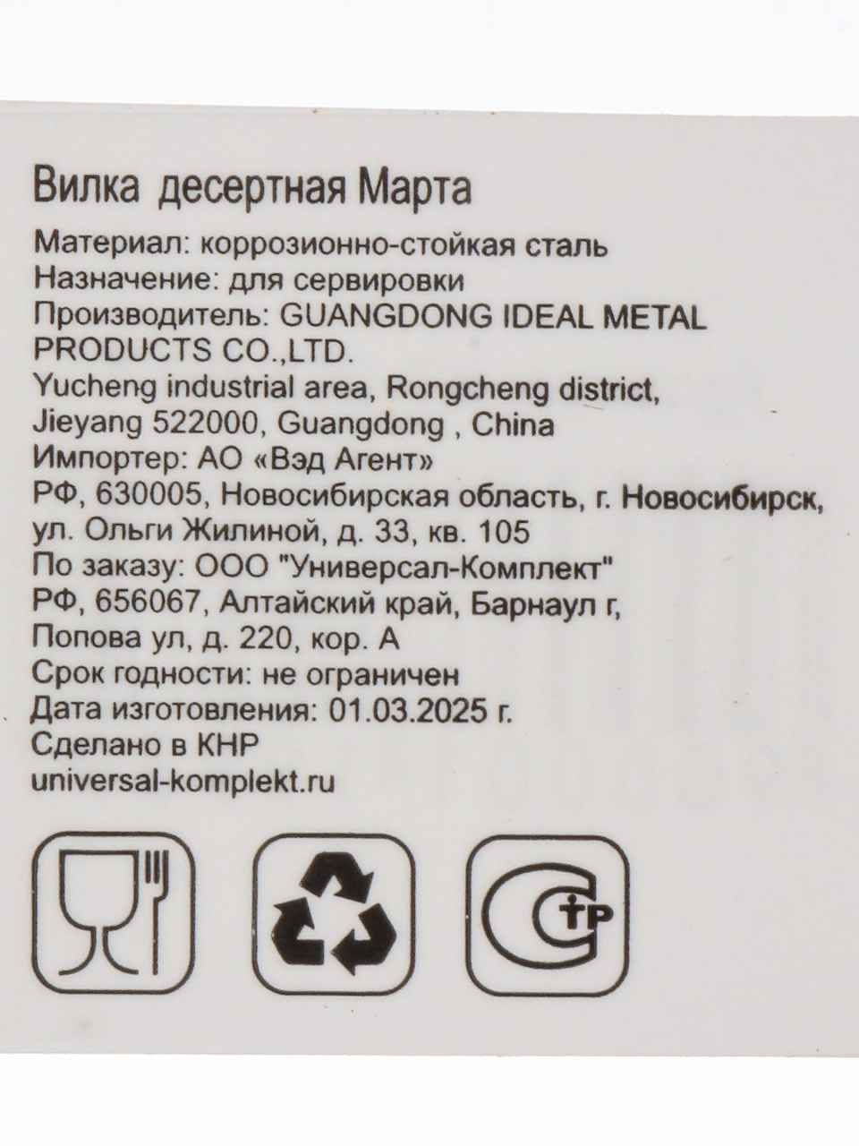 Вилка десертная Катунь Марта КТ-003-ВД-1 из нержавеющей стали — долговечный и стильный выбор для сервировки стола дома, на даче или в подарок. Не ржавеет, подходит для посудомоечной машины.