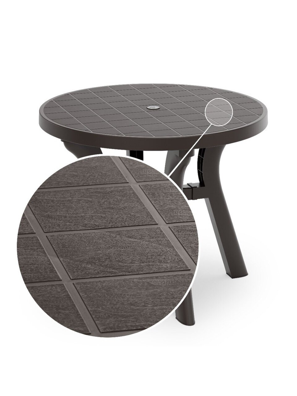 - Элегантный дизайн: круглая форма и цвет мокко делают стол стильным акцентом в интерьере.