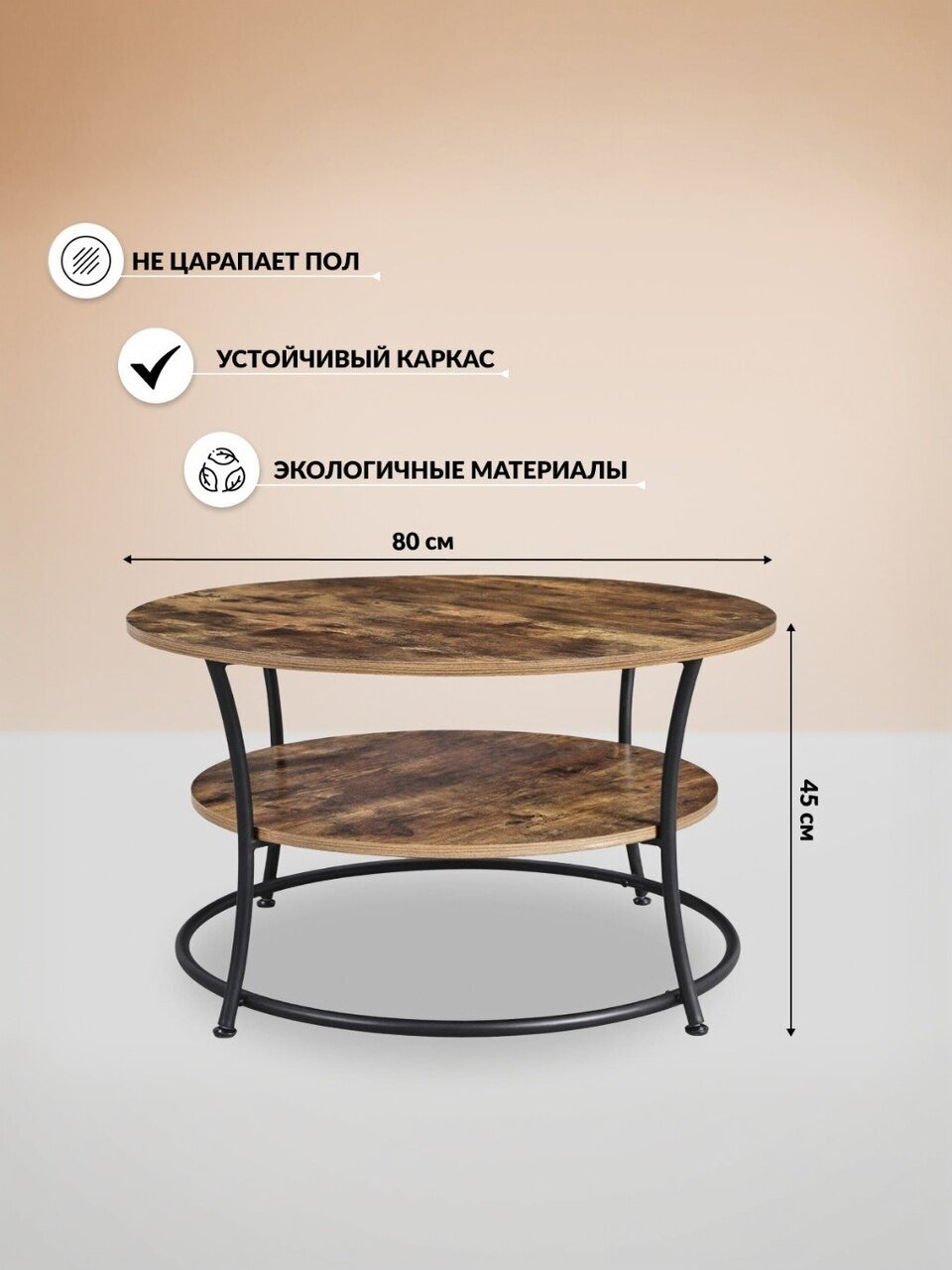 - Благодаря продуманному сочетанию износостойкой ДСП и прочной стали журнальный столик отличается устойчивостью и хорошей несущей способностью.