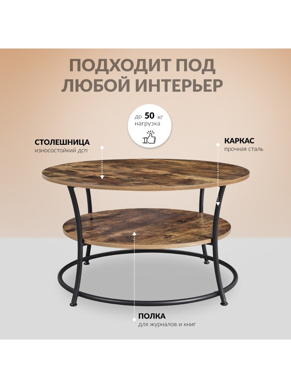 Журнальный стол с полкой — универсальный предмет мебели, который органично впишется в разные стилевые направления. Практичная конструкция придаст интерьеру обаяние и логическую завершенность. Этот стильный и функциональный элемент, благодаря прочным материалам, будет служить вам долгие годы.