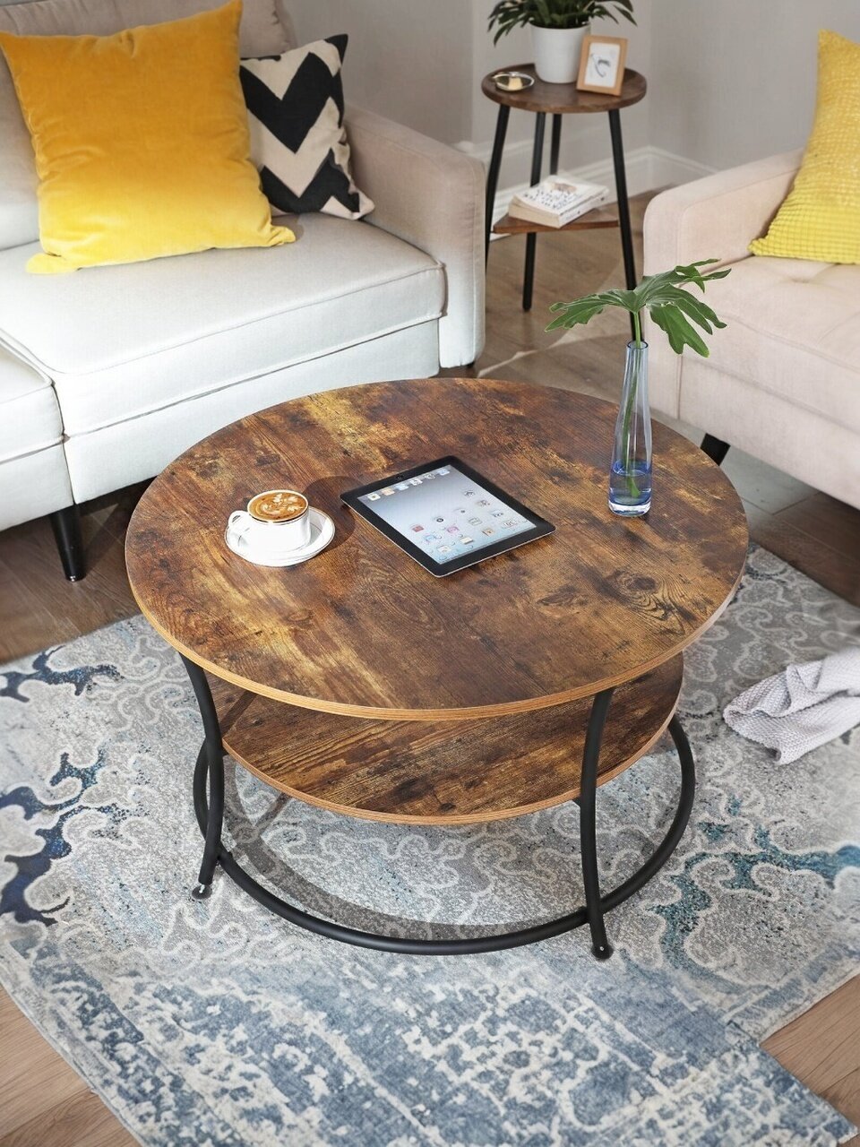 Этот круглый журнальный столик можно использовать в любом месте дома, будь то гостиная или столовая. Его универсальный дизайн идеально подходит для послеобеденного чая, ужина или расслабляющего позднего завтрака.