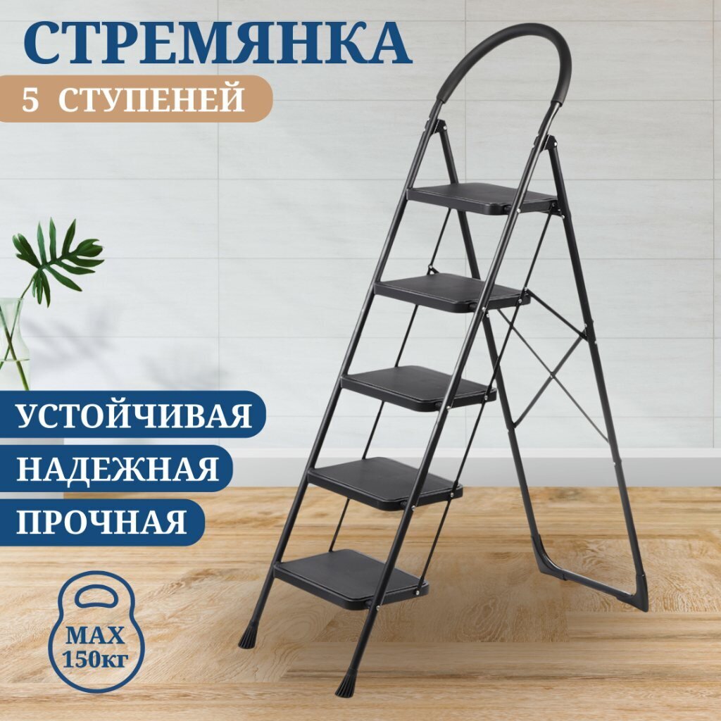 Стремянка изготовлена из высококачественных материалов, что обеспечивает ее долговечность и устойчивость.