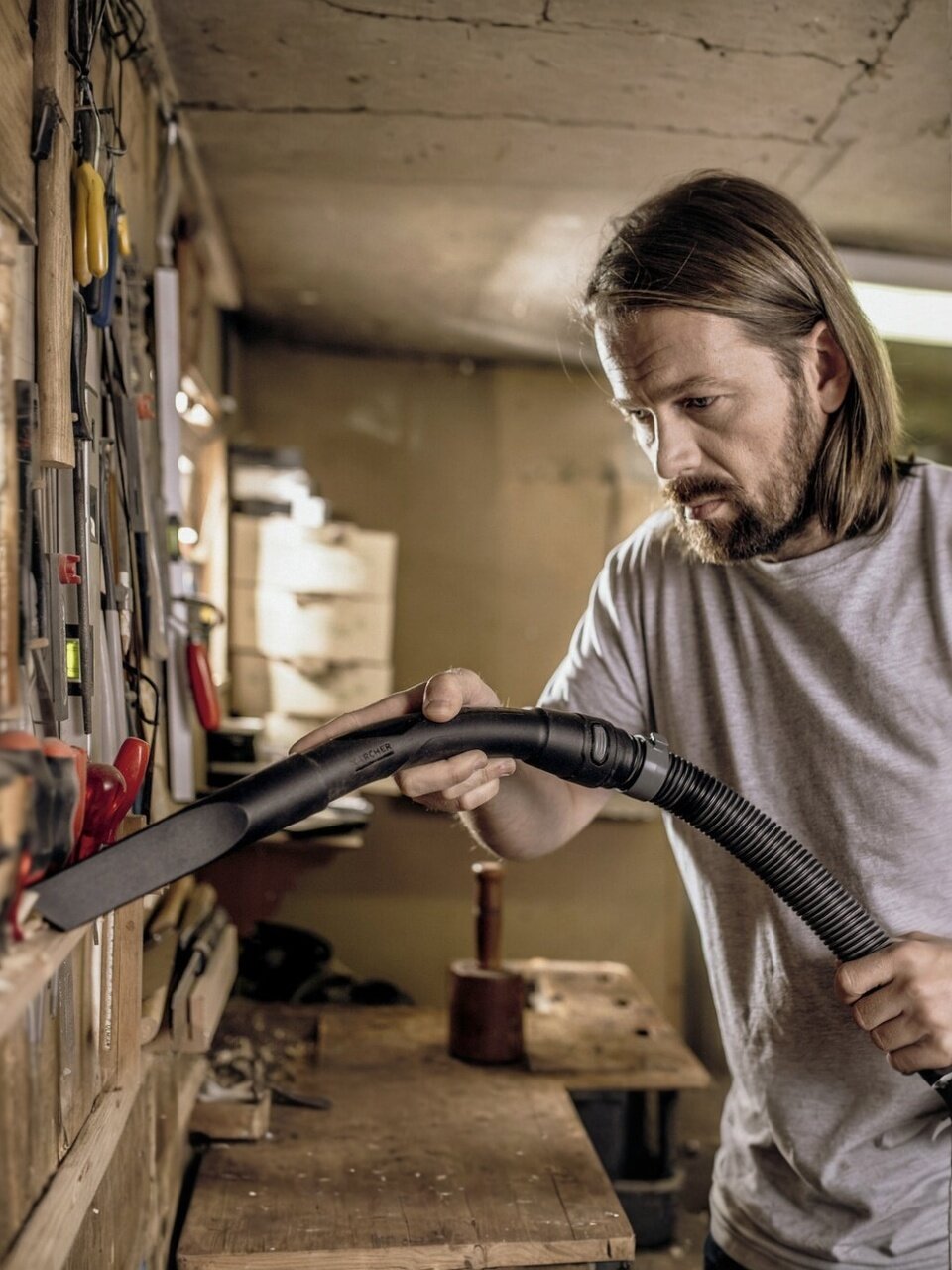 - Для уборки в местах, не допускающих всасывания мусора, предусмотрена практичная функция выдувания. Например, она позволяет удобно очищать гравийные площадки. Бережная очистка чувствительных поверхностей или предметов, требующих деликатного обращения.