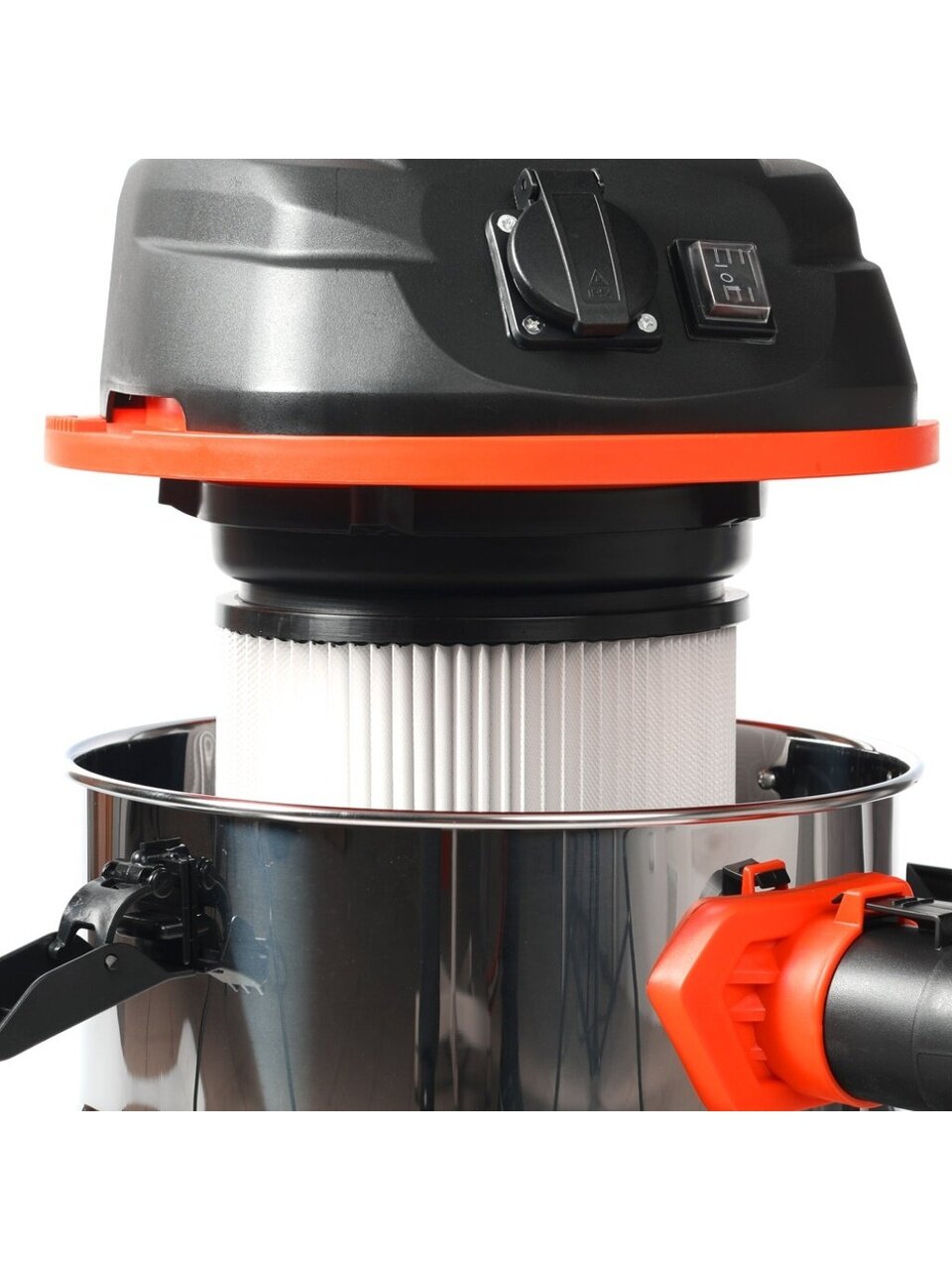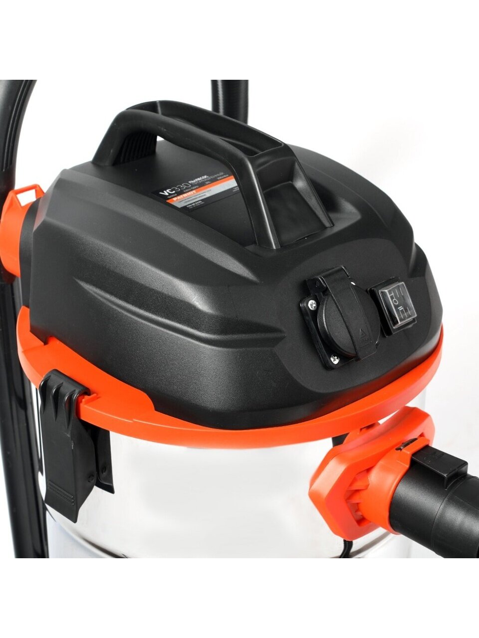 - Модель VC 330 имеет нержавеющий бак объёмом 30 литров и HEPA-фильтр, обеспечивающий высокоэффективную задержку частиц.
