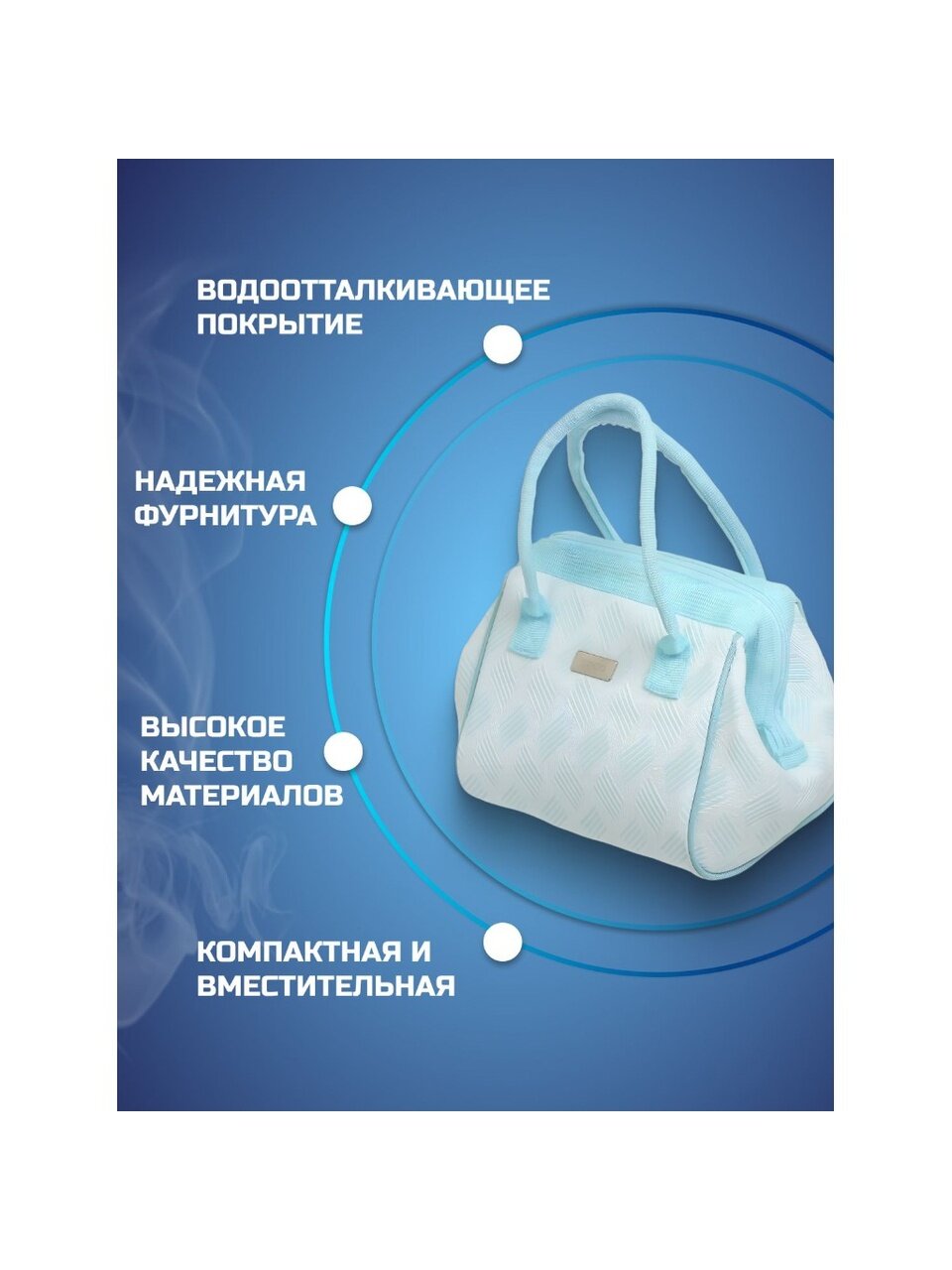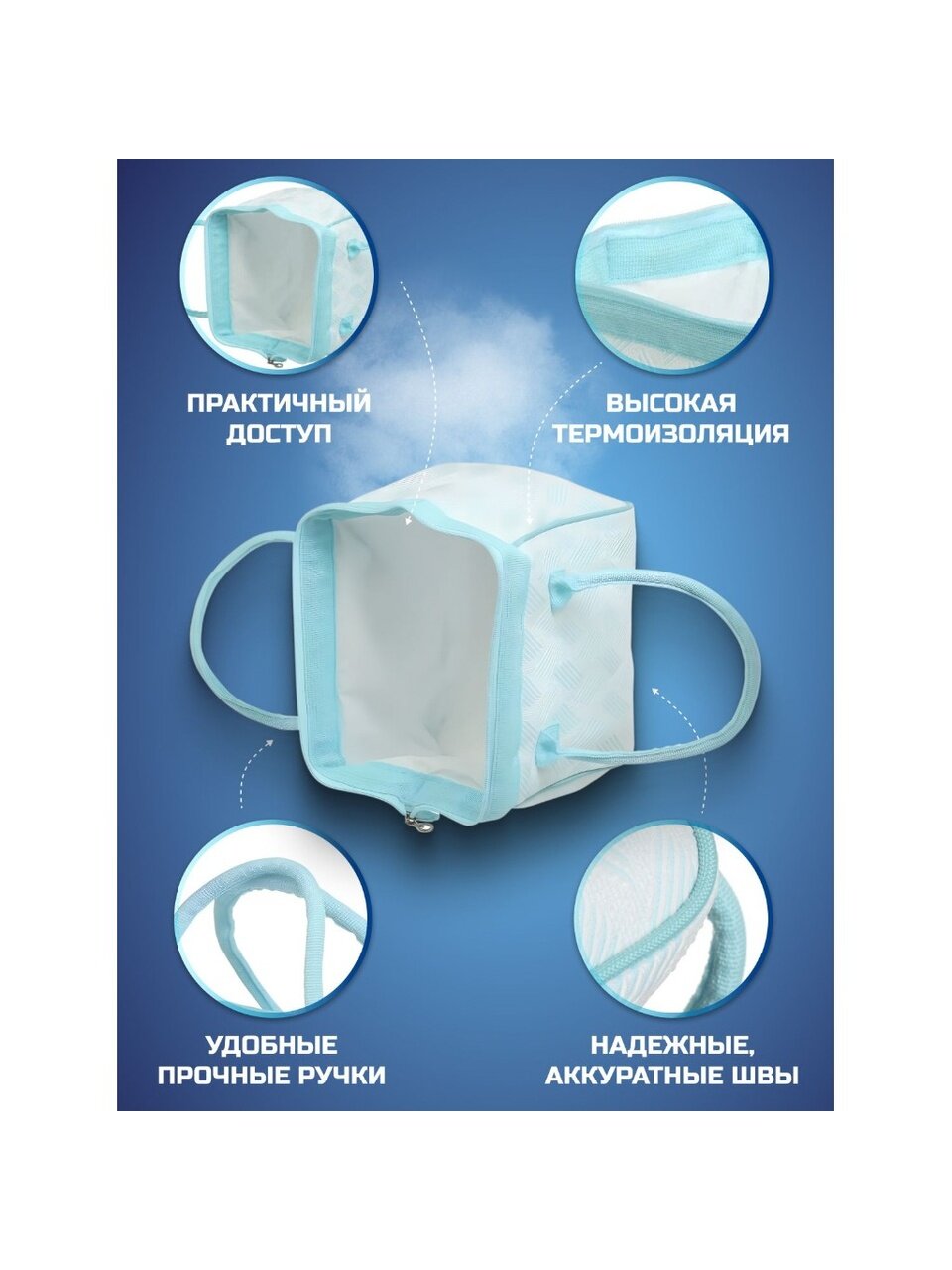 Компактные размеры термосумки — 24×18×19 см — позволяют легко разместить ее в автомобиле или перенести в руках. Удобные ручки для переноски делают транспортировку легкой и комфортной, что особенно важно в условиях активного отдыха. Цветовое решение в голубых тонах придаст вашему образу свежести и легкости, подчеркивая ваш стиль и индивидуальность.