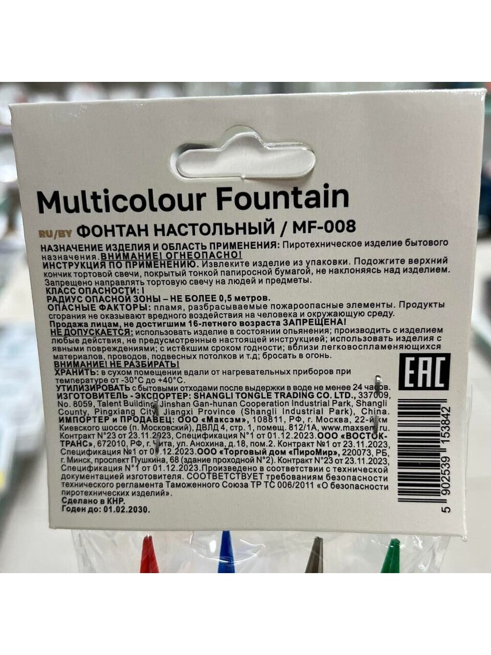 - Время горения: 30 сек.