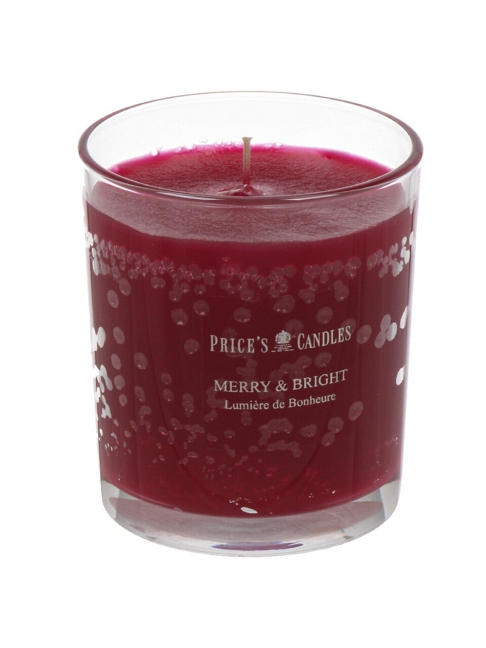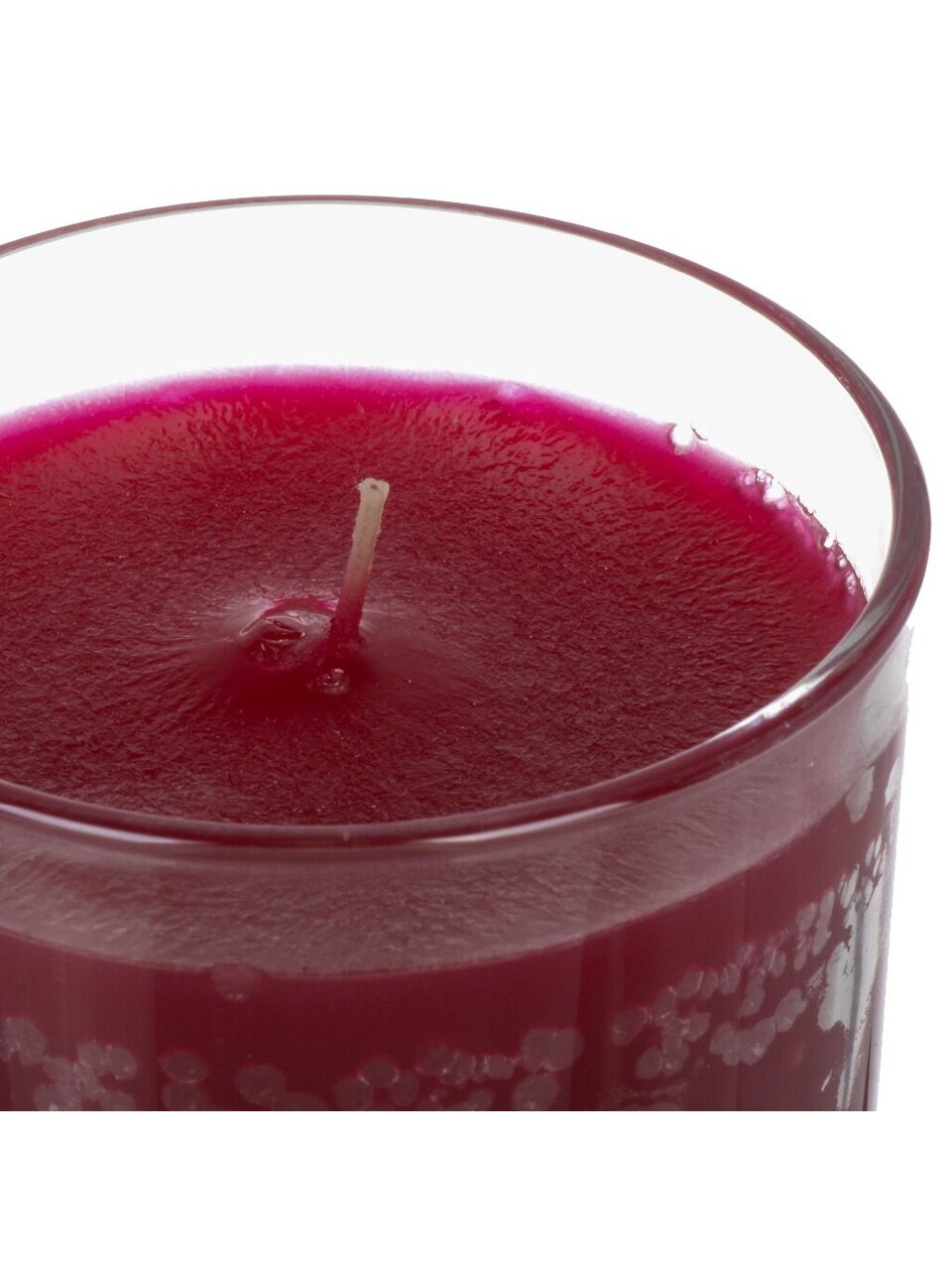 Свеча имеет высоту 8.5 см и диаметр 7.5 см, выполнена в бордовом цвете и круглом стакане без крышки — удобно и безопасно для интерьера.