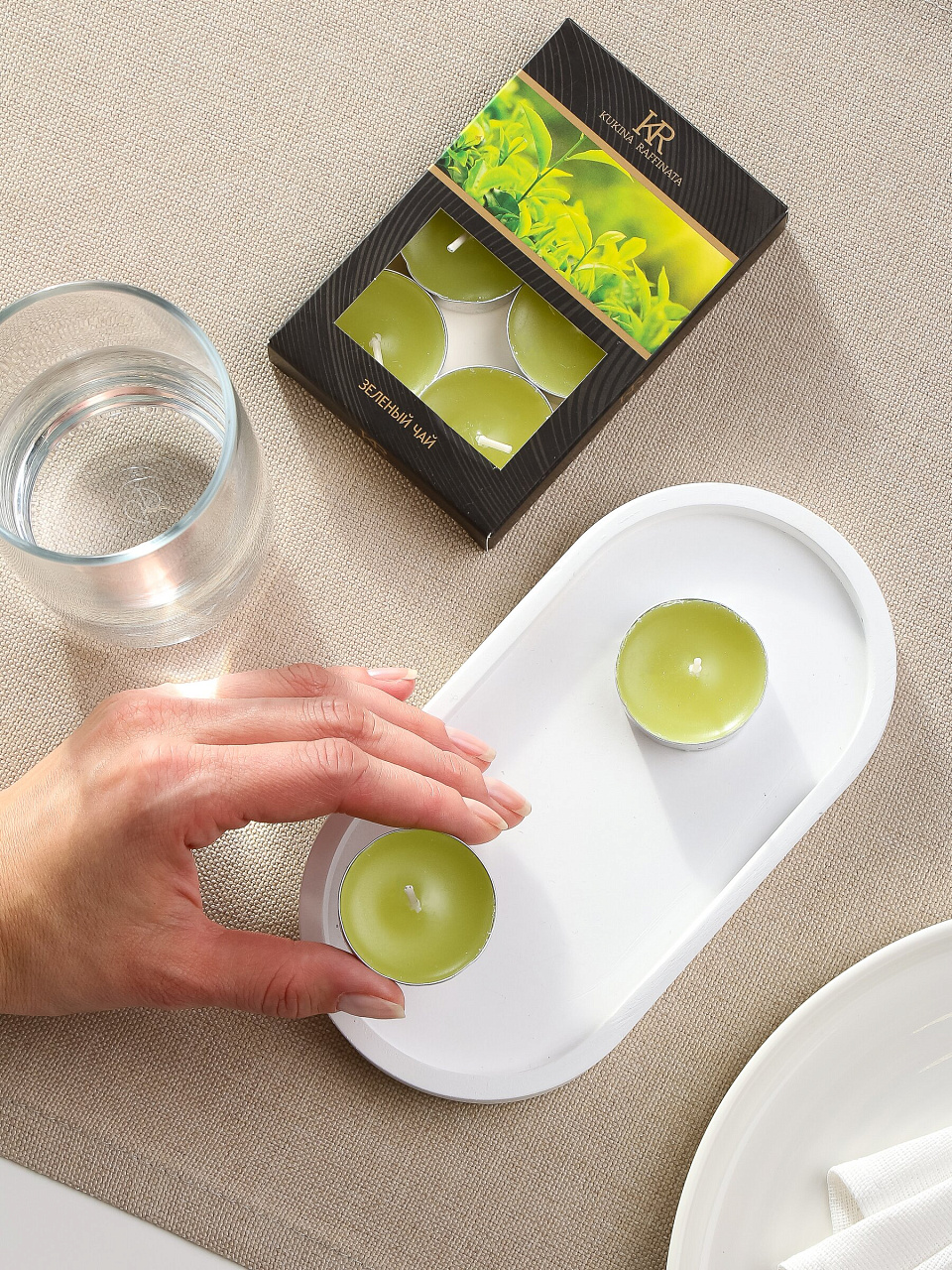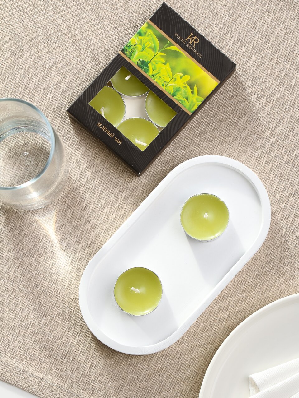 Свечи чайные ароматические с ароматом зелёного чая — 6 штук в наборе для уюта, релакса и стильного декора дома или дачи. Создайте атмосферу SPA по выгодной цене.