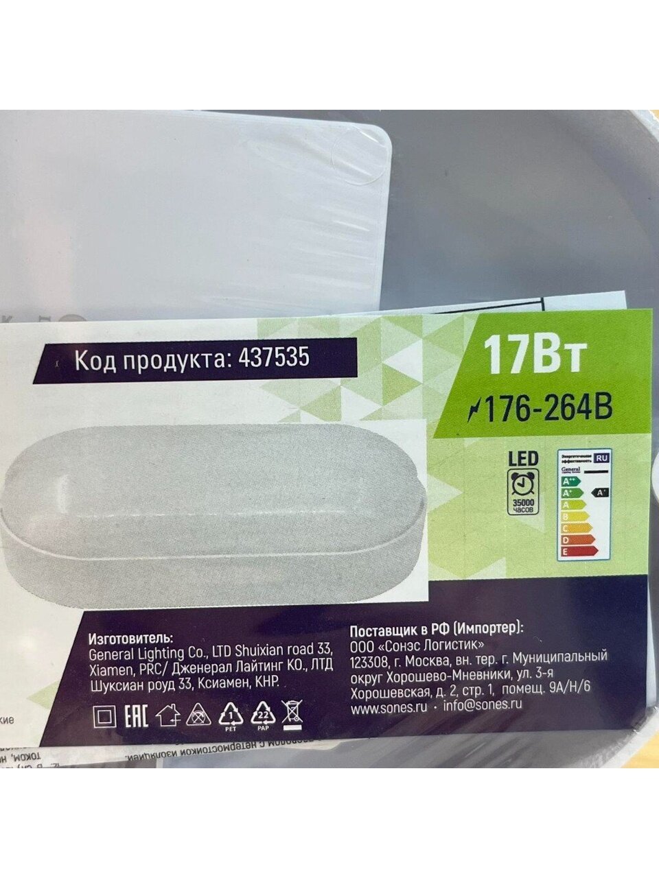 Вы можете приобрести «Светильник светодиодный, General Lighting Systems, ЖКХ, 17 Вт, 6500 К, 1440 Лм, IP65, 22х10х5.2 см, овальный, накладной, 437535» и другие товары в нашем интернет-магазине в Старом Осколе по низким ценам и с бесплатным самовывозом.