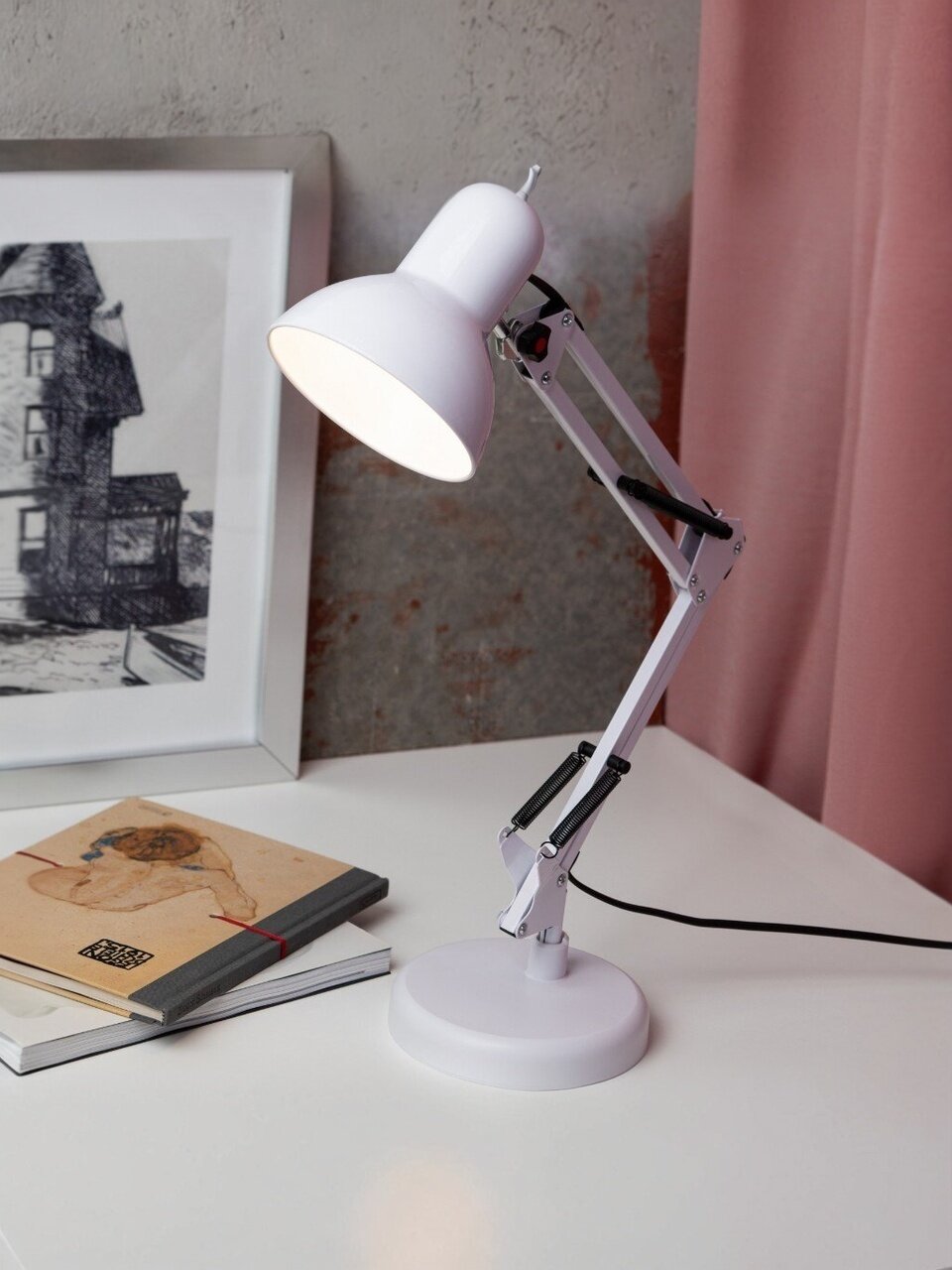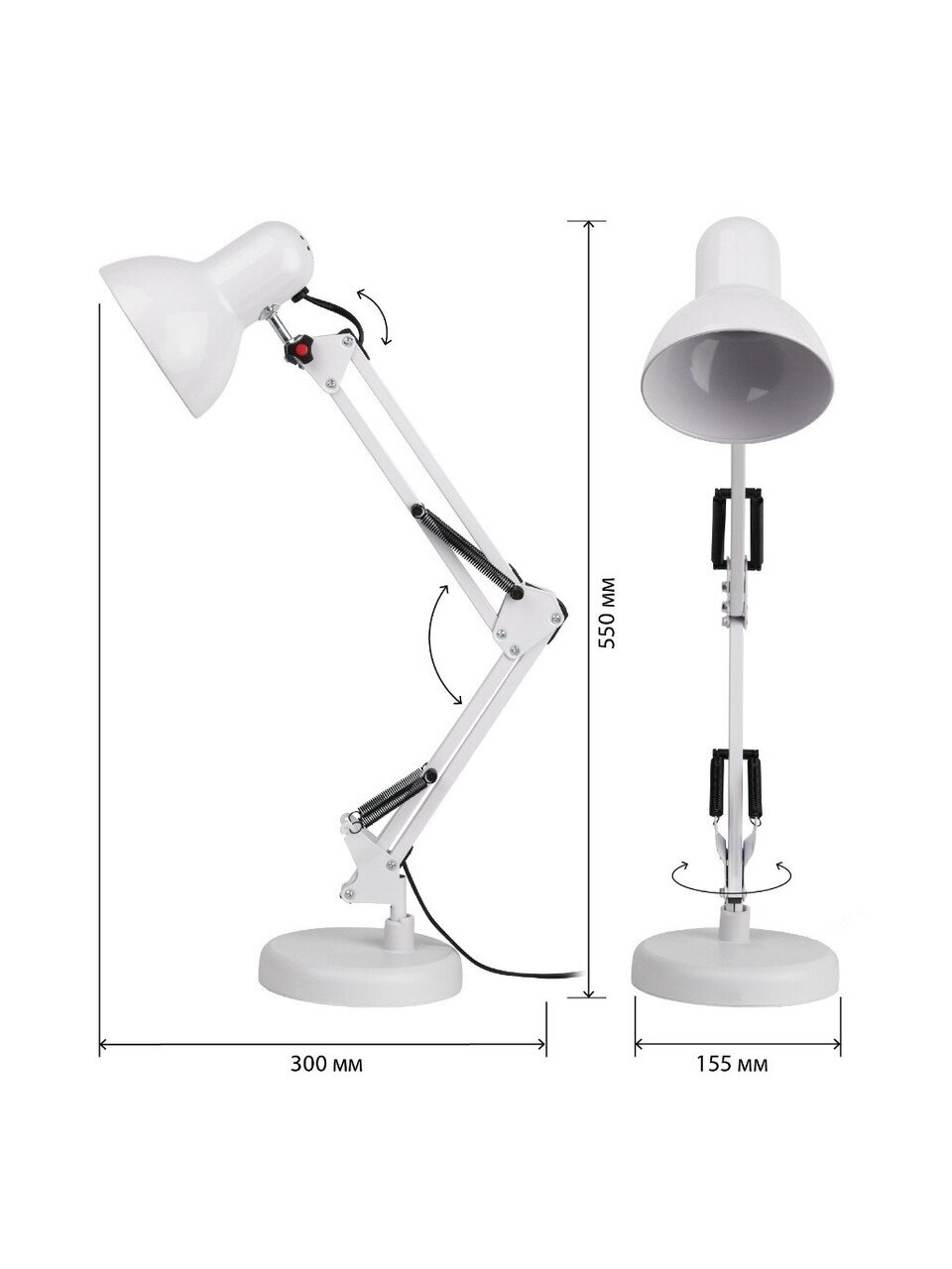 Настольный светильник ЭРА N-214-E27-40W-W классического дизайна может использоваться с разными источниками света - лампой накаливания, компактной люминесцентной лампой (КЛЛ) или светодиодной (LED) лампой. Выключатель на проводе. Крепится на струбцину. Высота плафона регулируется двухсекционной сгибающейся стойкой, направление света - поворотом и наклоном плафона в любом направлении.