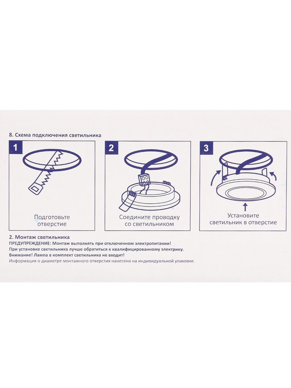 Для монтажа потребуется отверстие диаметром 90 мм, высота светильника — 6 см. Установка проста даже для новичков.