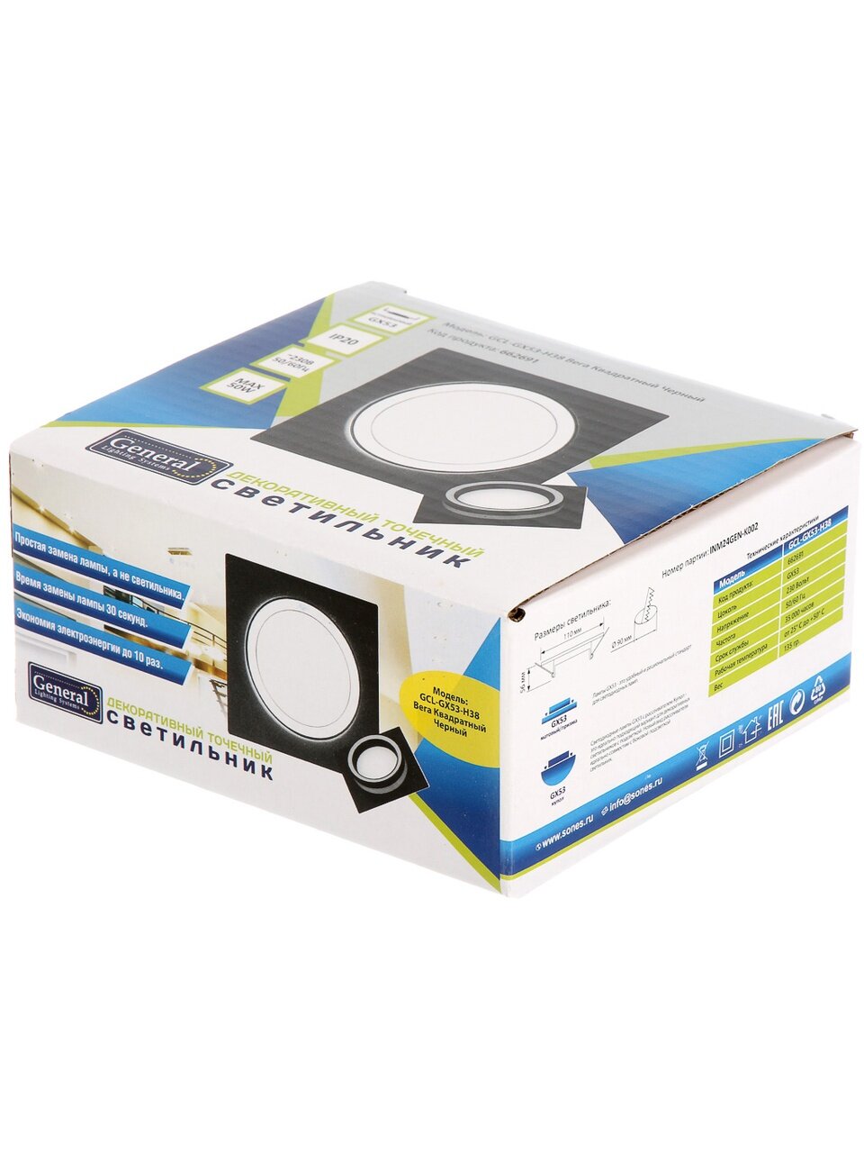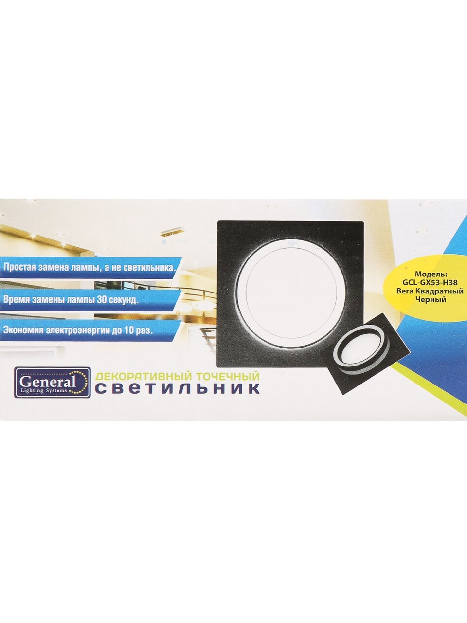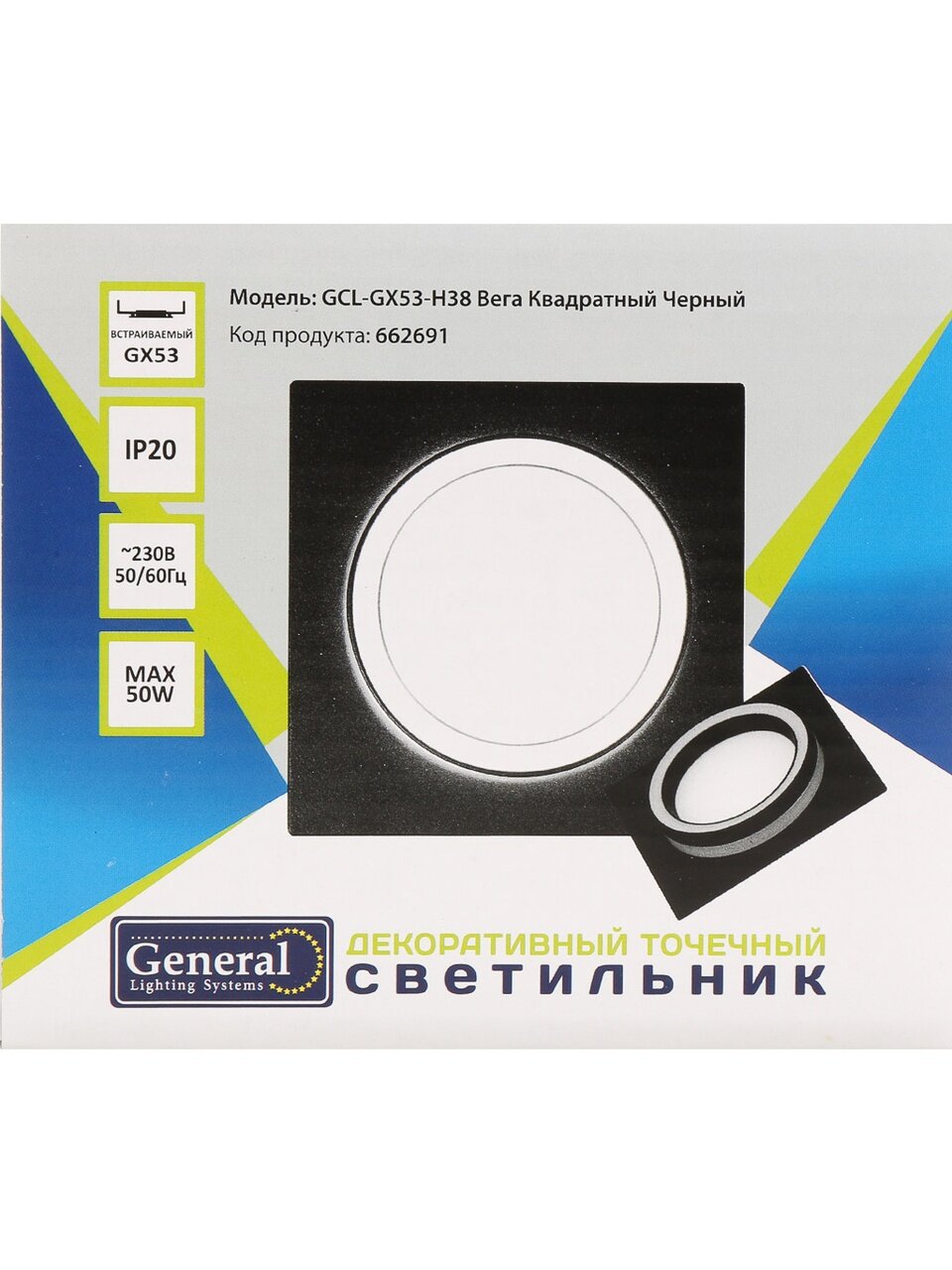 Вы можете приобрести «Светильник встраиваемый Вега, GX53, квадратный, черный, General Lighting Systems, GCL-GX53-H38» и другие товары в нашем интернет-магазине в Тамбове по низким ценам и с бесплатным самовывозом.