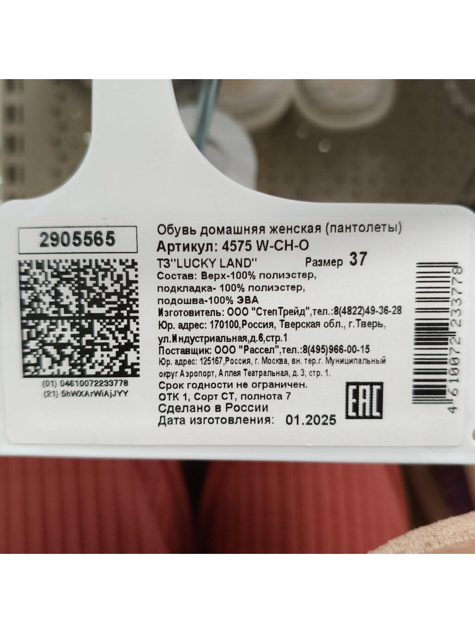 Тапки для женщин, р. 37, открытые, 4575W-CH-O - фото 1 от пользователя