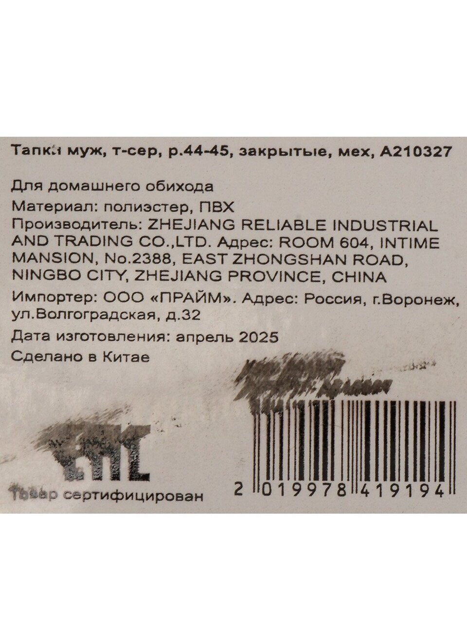 Тёмно-серый цвет смотрится стильно и лаконично, гармонирует с любым домашним интерьером и не марок, что значительно упрощает уход. Универсальный размер 44-45 отлично подойдёт для большинства мужчин, обеспечивая удобную посадку и свободу движений. Закрытый мыс надёжно защищает пальцы от холода, а открытая пятка облегчает надевание и снятие тапок, делая их максимально удобными для повседневного использования.