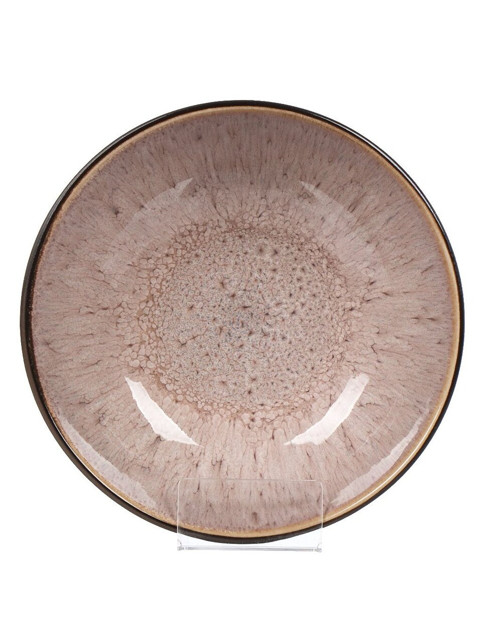 Тарелка не имеет рисунка, но оформлена в актуальном стиле «в крапинку», что делает её универсальной для любого интерьера. Если вы ищете, какую глубокую тарелку купить недорого для дачи или подарка, обратите внимание на этот вариант — он сочетает стиль и практичность.