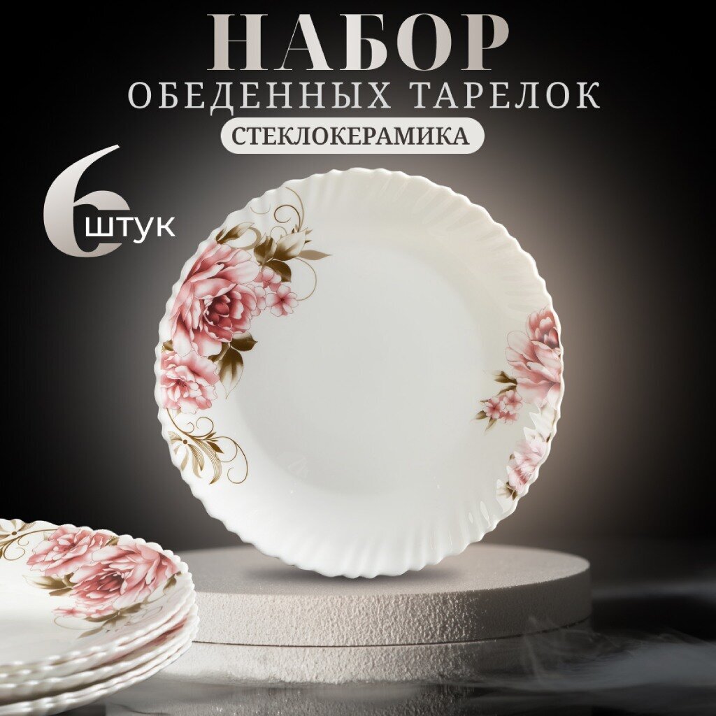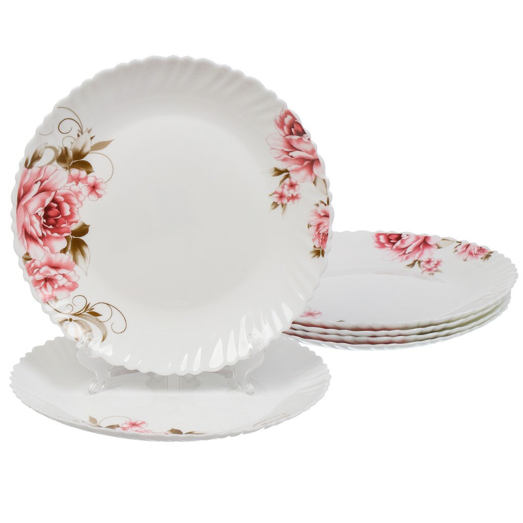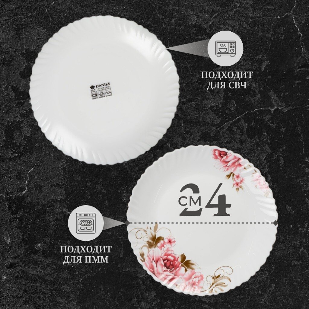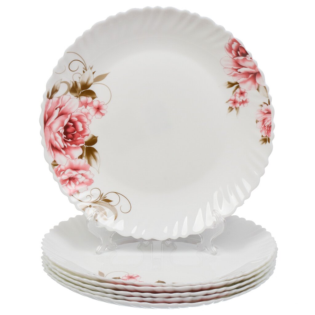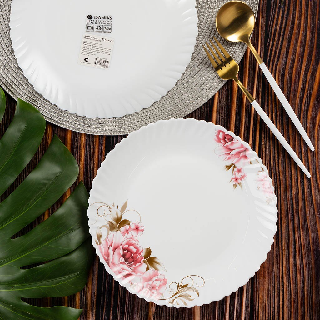 Тарелки Daniks Анжелика — набор из 6 круглых обеденных тарелок 24 см из стеклокерамики с цветочным орнаментом для стильной сервировки дома и на даче.