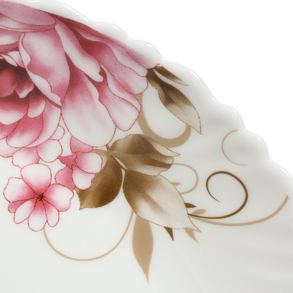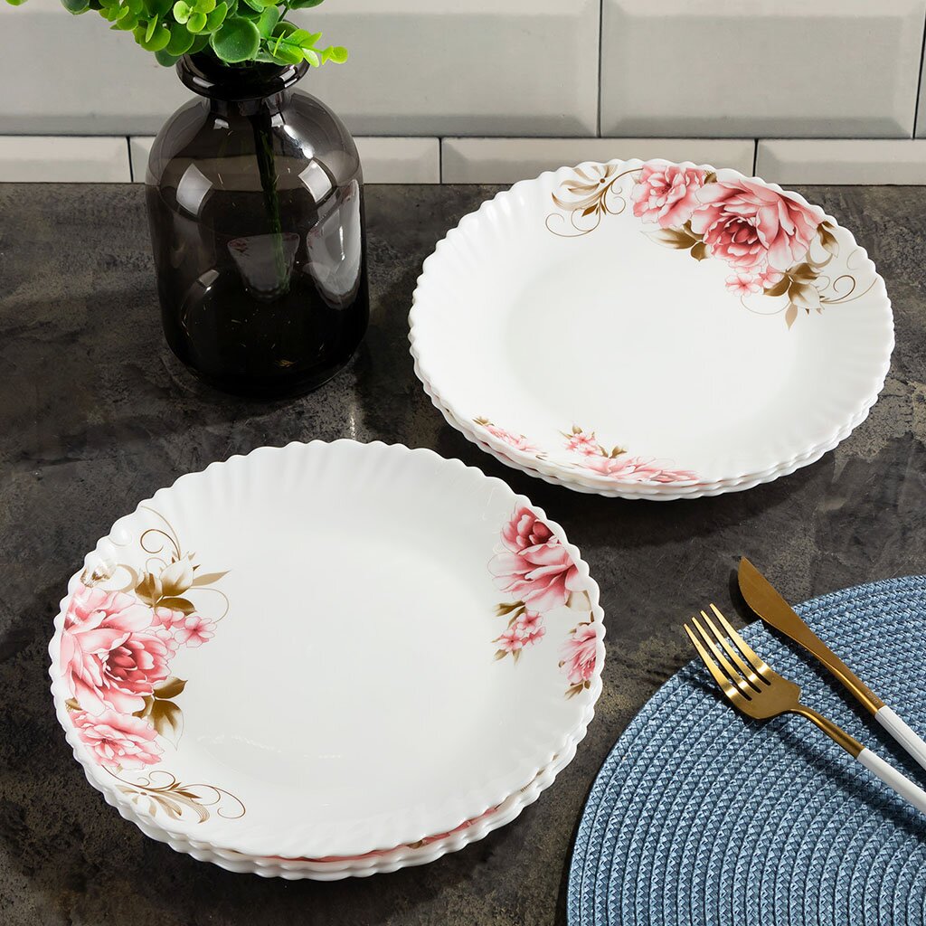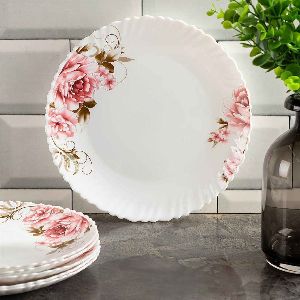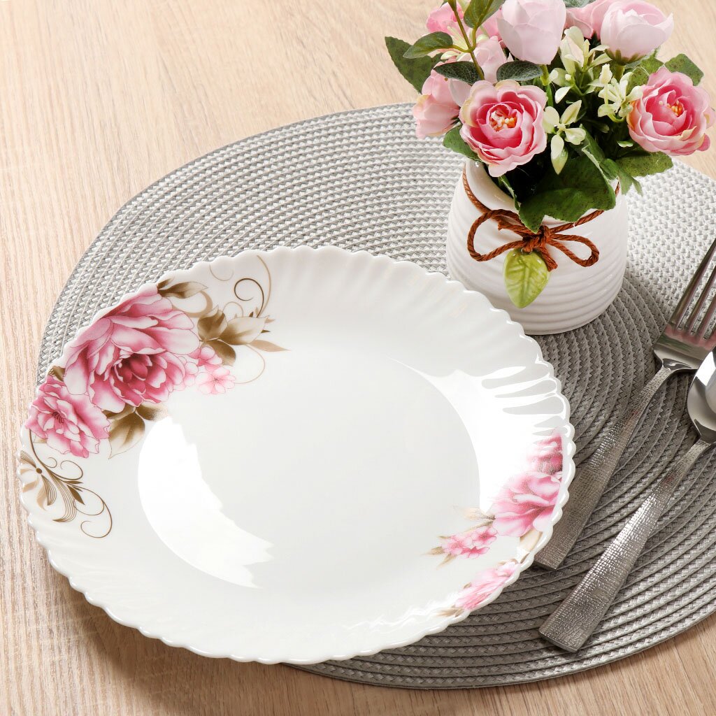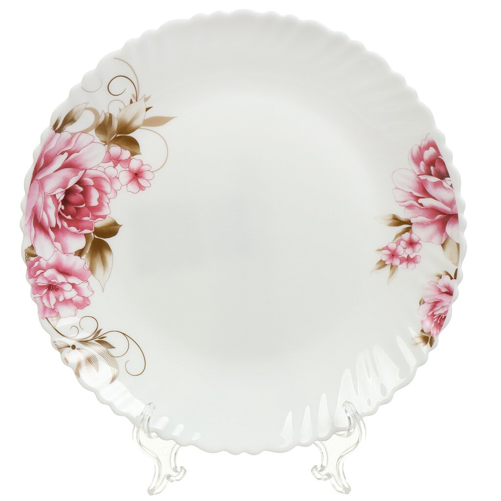 Тарелки Daniks Анжелика — набор из 6 круглых обеденных тарелок 24 см из стеклокерамики с цветочным орнаментом для стильной сервировки дома и на даче.