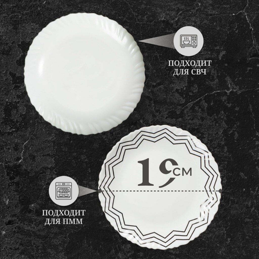 Диаметр каждой тарелки — 19 см, оптимальный для десертов и закусок. Толщина стандартная для стеклокерамики, что обеспечивает прочность и долговечность.