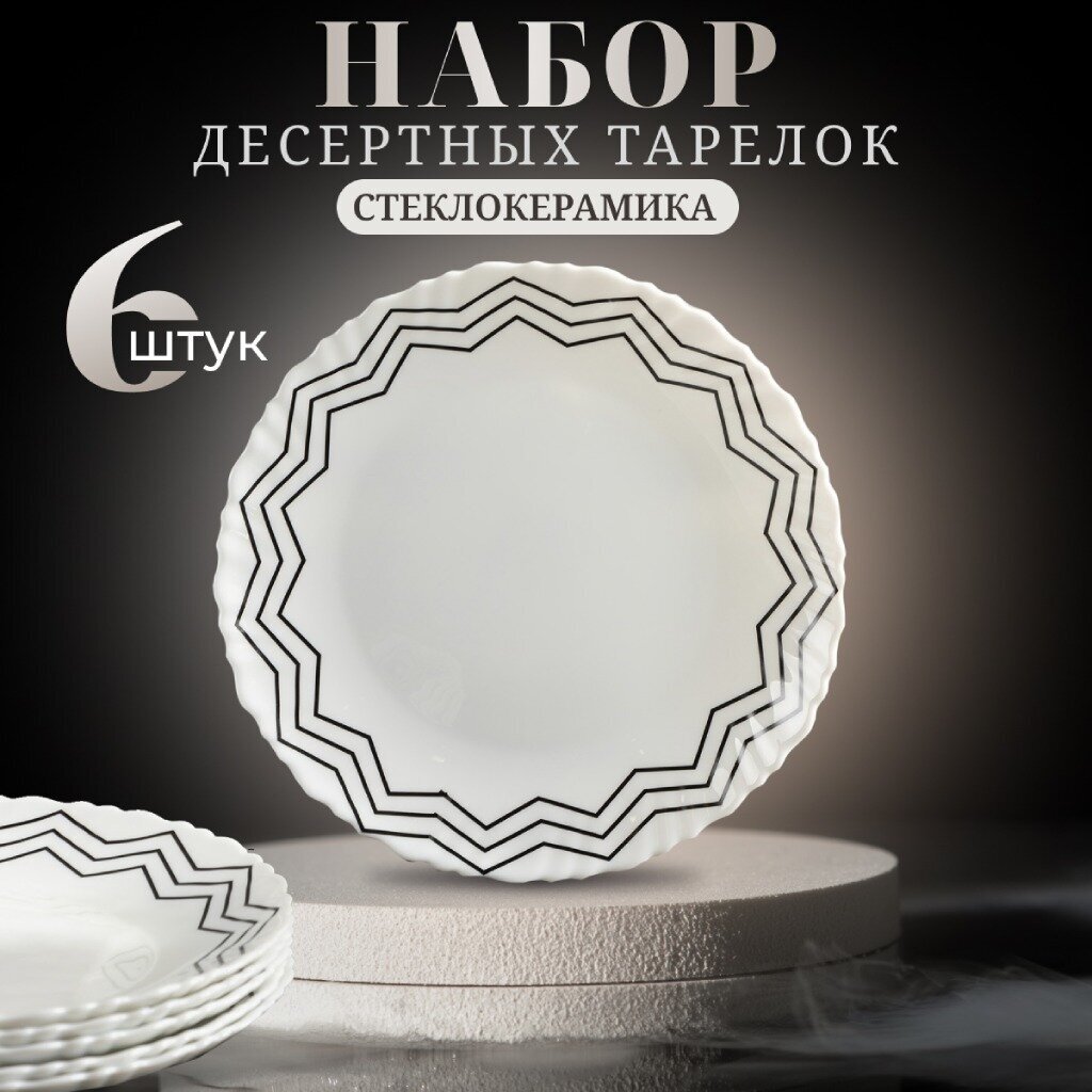 Тарелки десертные Daniks Вэнсдей — набор из 6 стеклокерамических тарелок 19 см для стильной сервировки и повседневного использования. Устойчивы к сколам, подходят для СВЧ и посудомоечной машины.