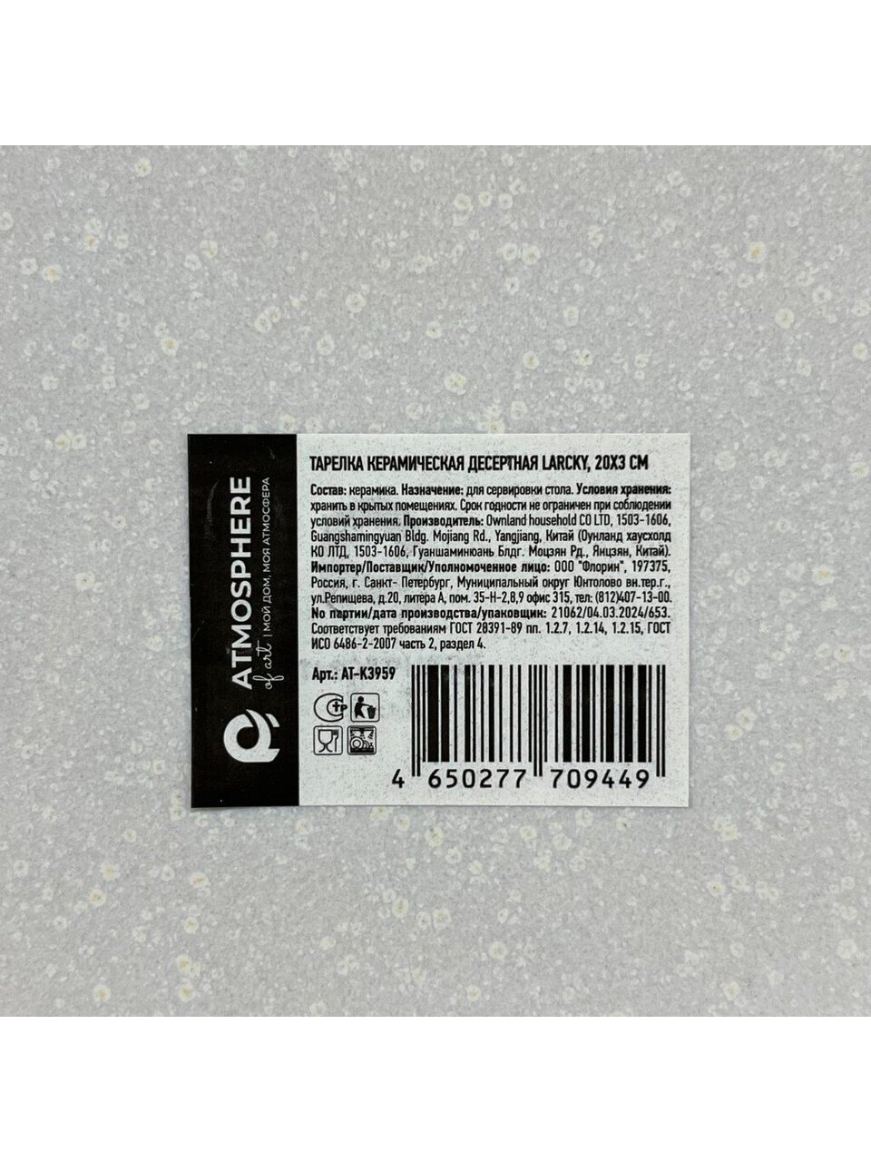 Вы можете приобрести «Тарелка десертная, керамика, 20 см, круглая, Larcky, Atmosphere, AT-K3959» и другие товары в нашем интернет-магазине в Смоленске по низким ценам и с бесплатным самовывозом.
