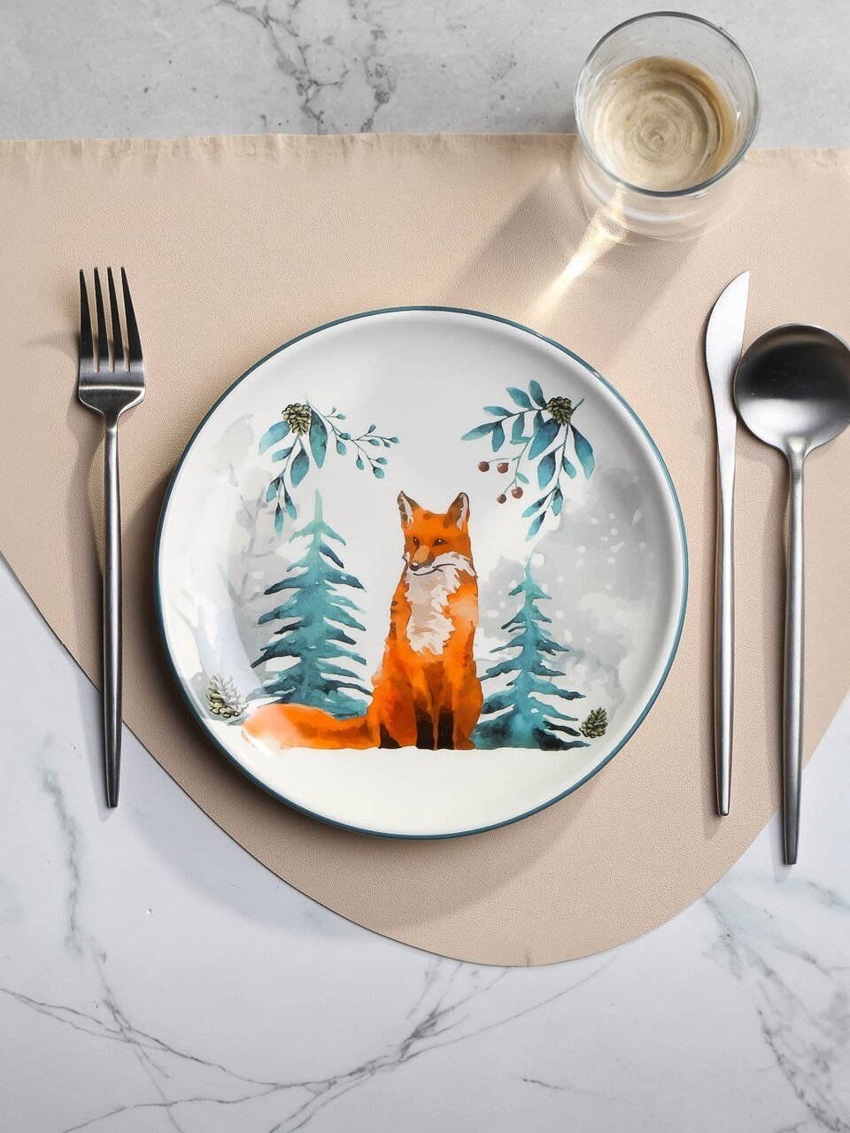 Тарелка из доломита 21×21 см с рисунком лисички от Daniks — стильный акцент для сервировки, оригинальный подарок и безопасное решение для детских и семейных завтраков.
