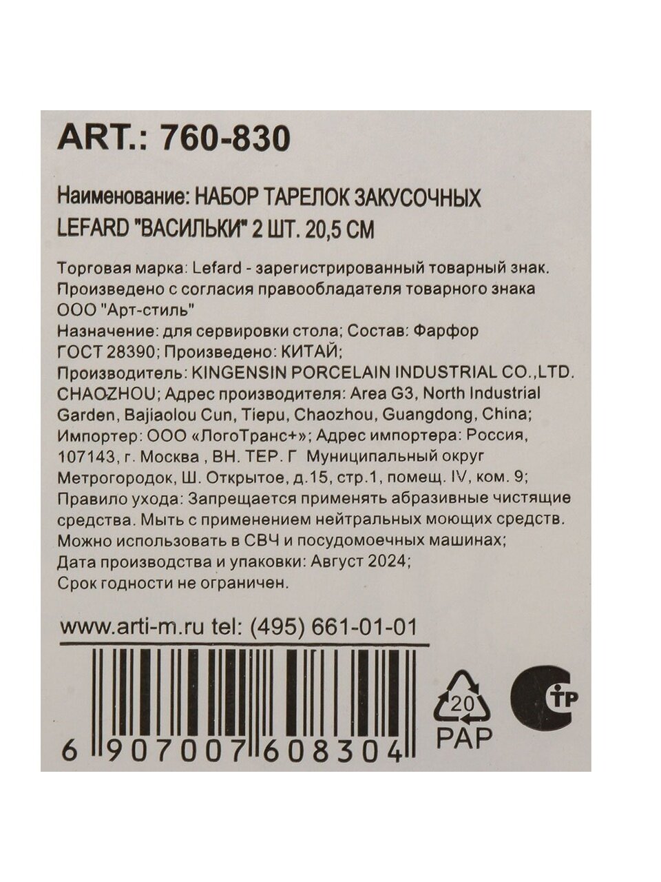 Набор закусочных тарелок Lefard Васильки 2 шт — фарфор 20.5 см, изысканный дизайн для стильной сервировки и подарка. Можно мыть в посудомойке.
