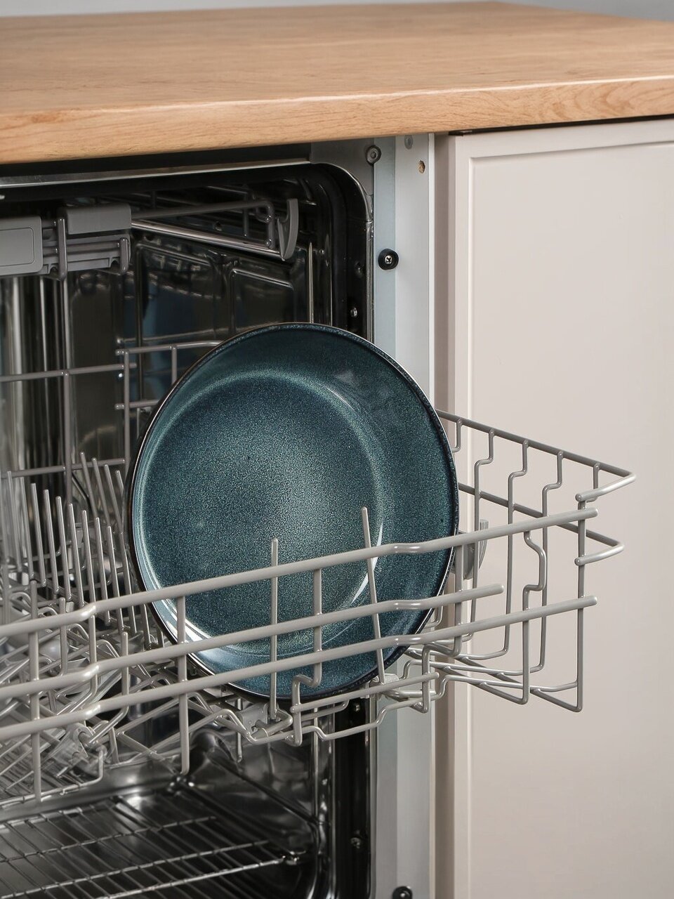 Керамика долговечна, не впитывает запахи, легко моется, а стильный синий цвет Stone Midnight делает её универсальным вариантом для любого случая.