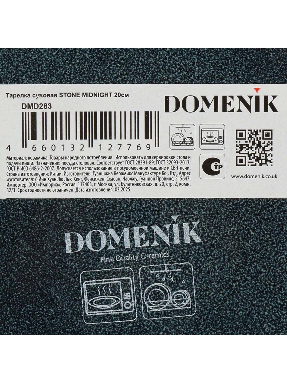 Тарелка суповая Domenik Stone Midnight 20 см: стильная керамика для дома и дачи. Удобна, прочна, подходит для СВЧ и посудомоечной машины — идеальный выбор для современной кухни.