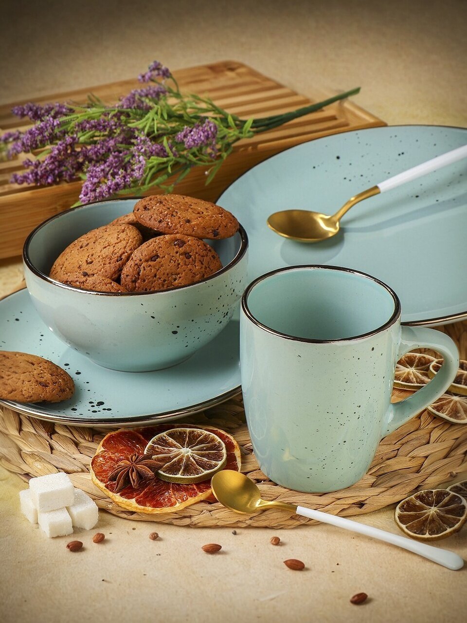 Daniks Стелла изготовлена из каменной керамики, не впитывает запахи, не тускнеет, имеет уникальный голубой цвет с крапинкой — это трендовый элемент для сервировки и подарка.