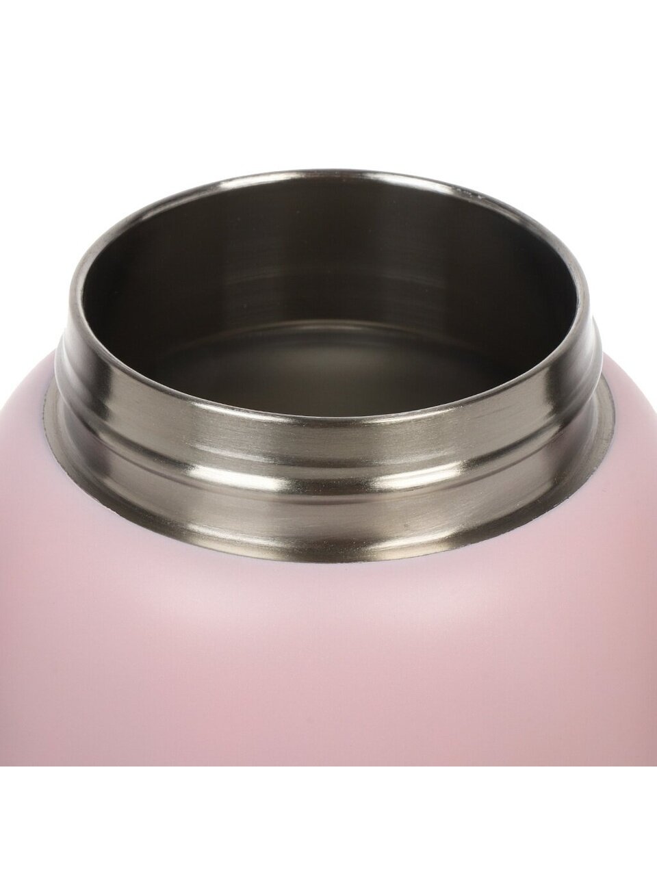 Объём — 0.85 литра, узкая горловина, компактная форма для сумки или подстаканника, материал — сталь и пластик, цвет — розовый.