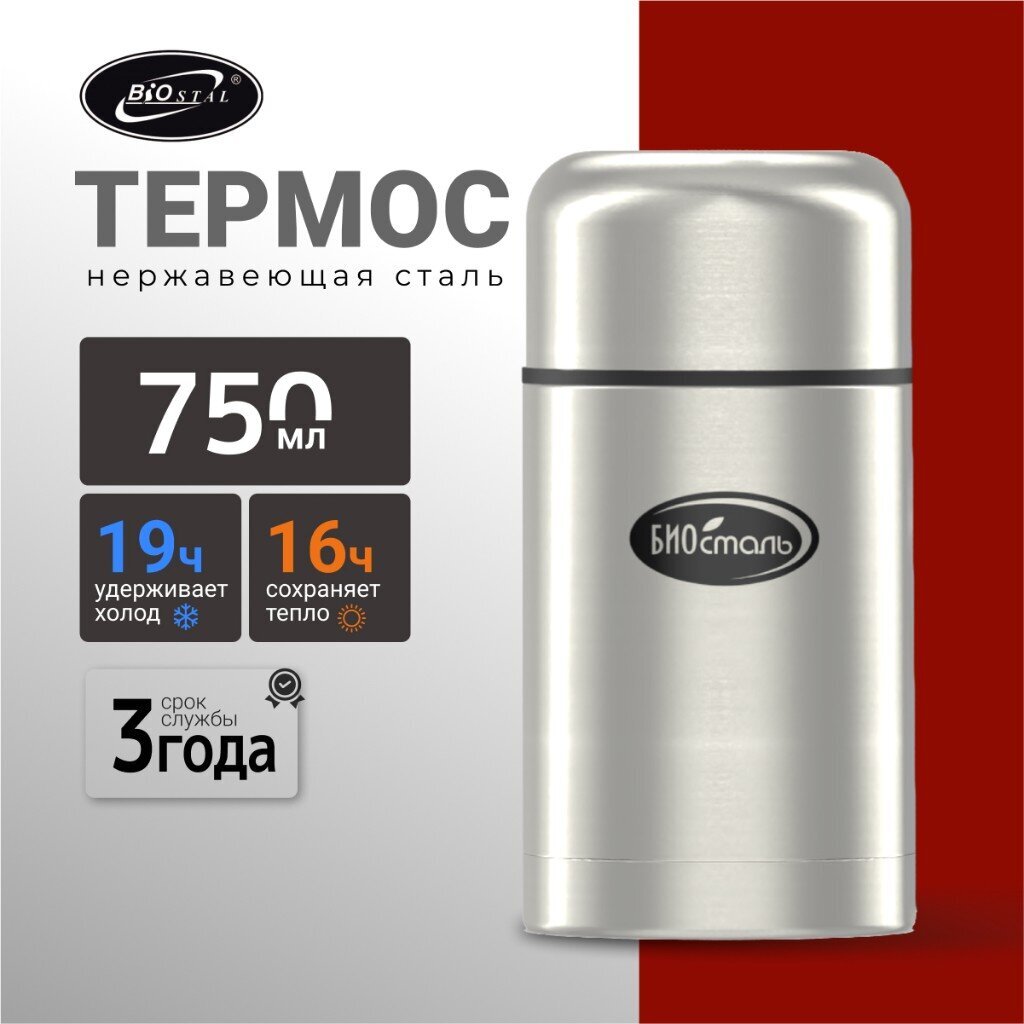 Термос для еды Biostal 0.75 л — сохраняет тепло до 24 часов, не протекает, идеально подходит для обеда в офисе, на даче или в путешествии.