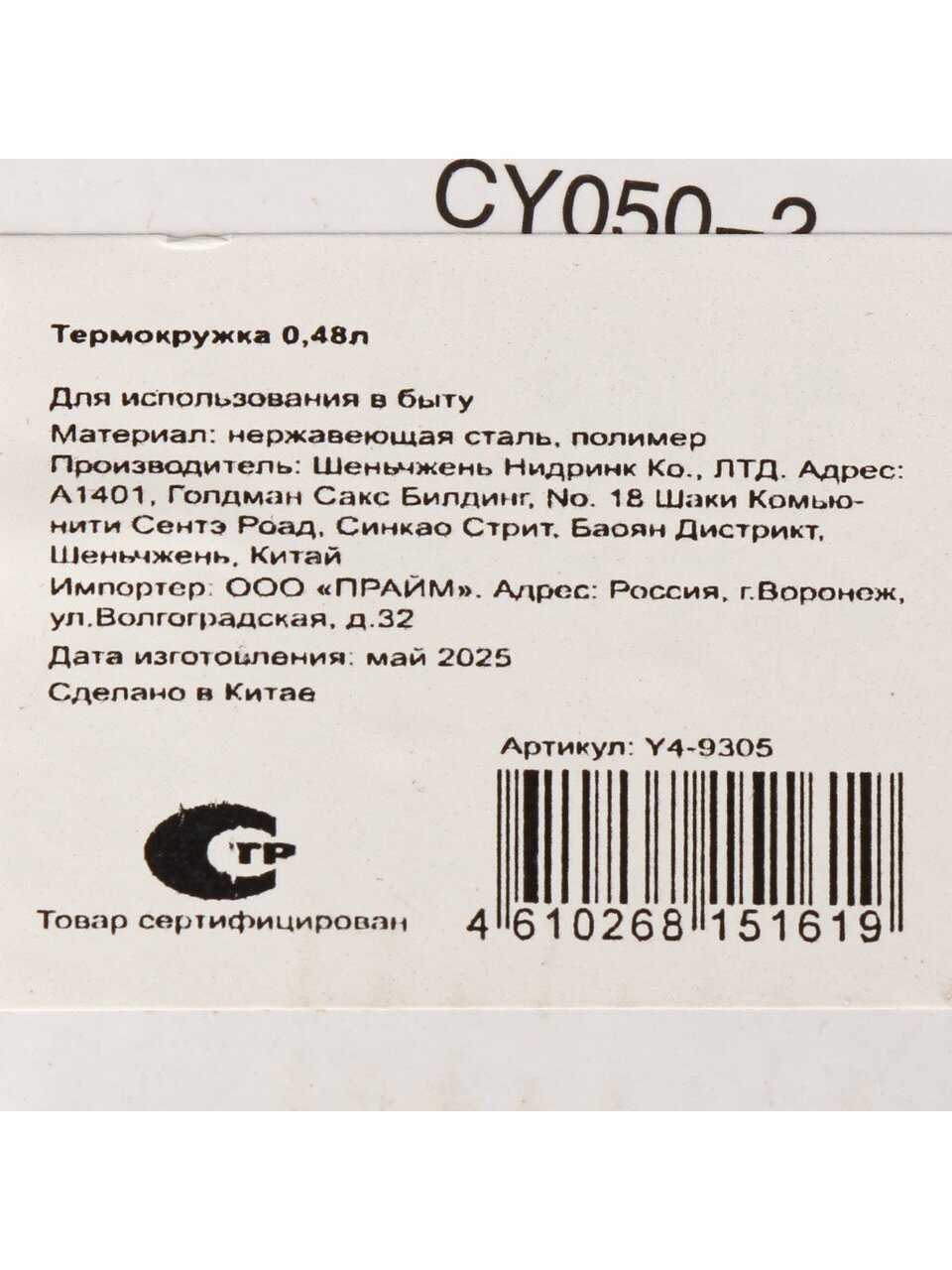 Термокружка из нержавеющей стали 0.48 л голубая Y4-9305: стильный способ сохранить напитки горячими или холодными до 4 часов — удобно в дороге и дома.