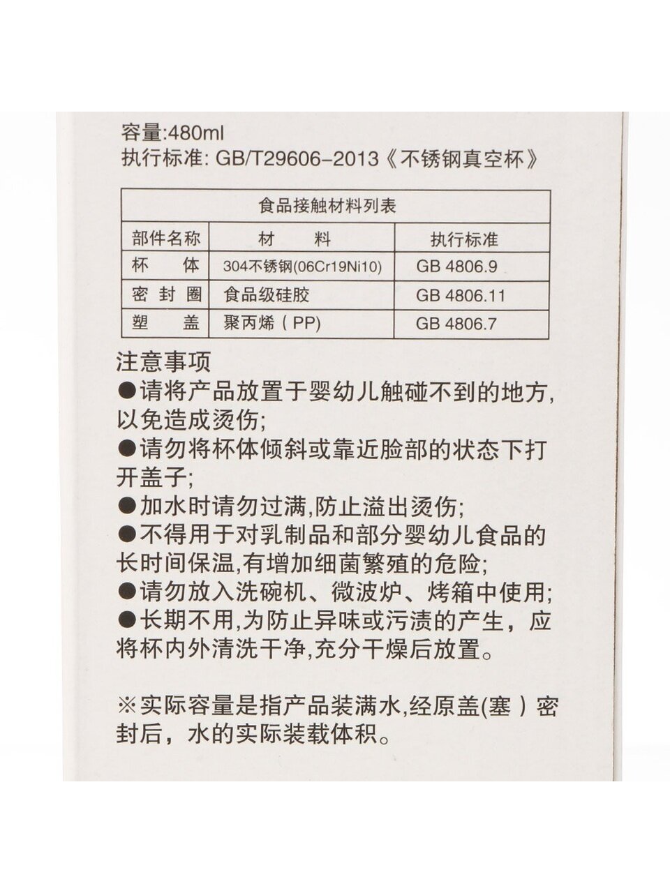 Объём — 0.48 литра, высота — 16.4 см, диаметр горлышка — 7.4 см. Кружка компактная, помещается в стандартный подстаканник в автомобиле.