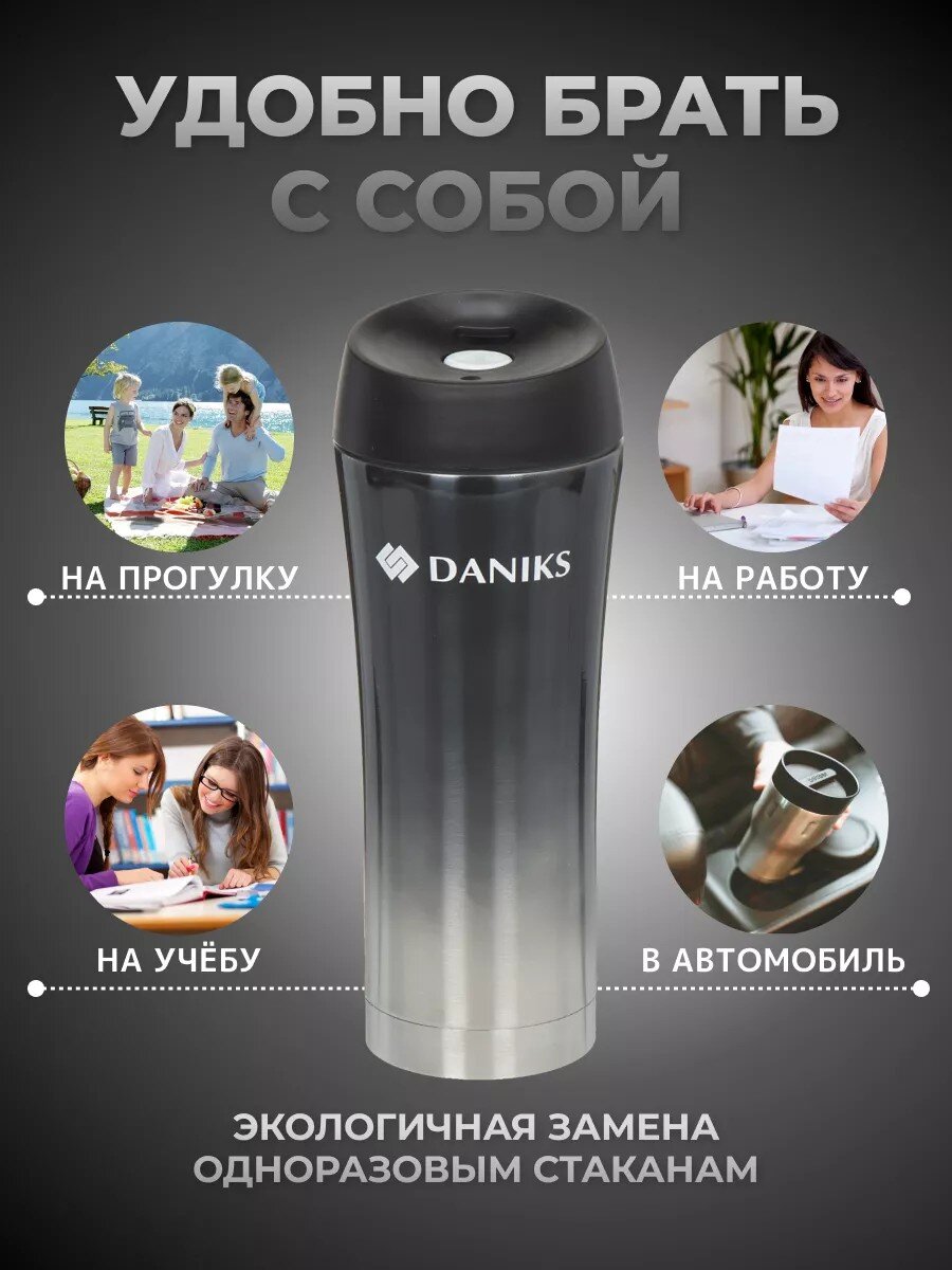 Термокружка Daniks 0.45 л из нержавеющей стали: держит тепло и холод до 2 часов, прочная конструкция, удобна для города и авто — решение для активных людей.