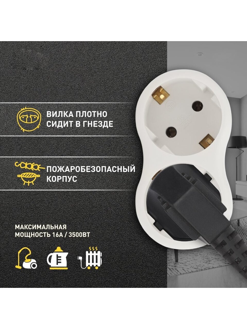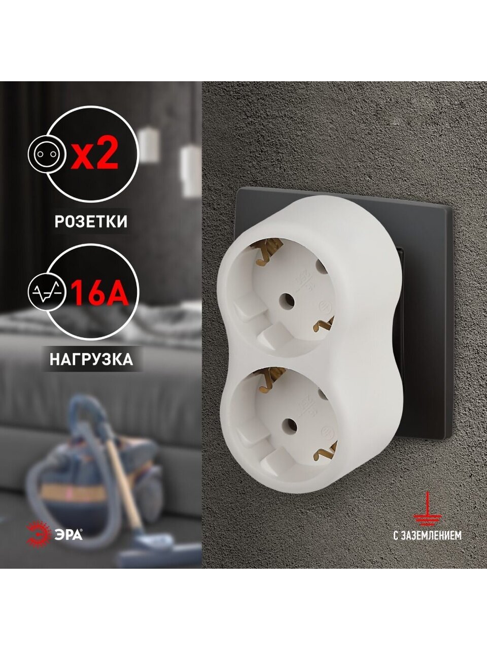 Если в Вашем доме недостаточно розеток, чтобы одновременно подключить несколько электроприборов, то тройник марки Эра станет Вашим надежным помощником. Корпус выполнен из ударопрочного и негорючего пластика. Модель тройника на 16 А позволяет подключить мощные бытовые приборы общей нагрузкой до 3500 Вт. Вы можете не бояться включить чайник, обогреватель или микроволновку. Дизайн разработан в России командой Эра Style.