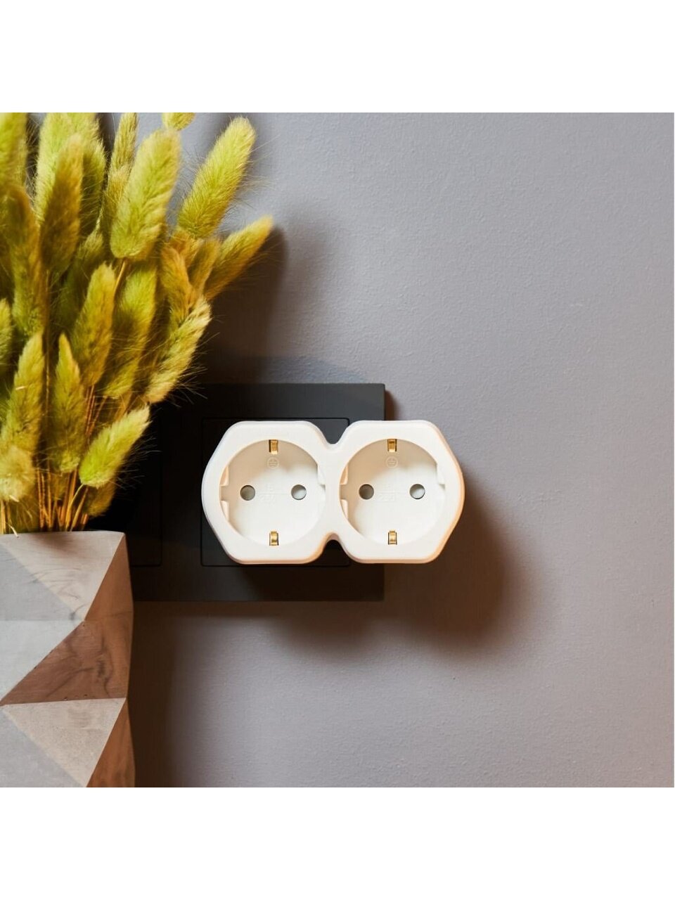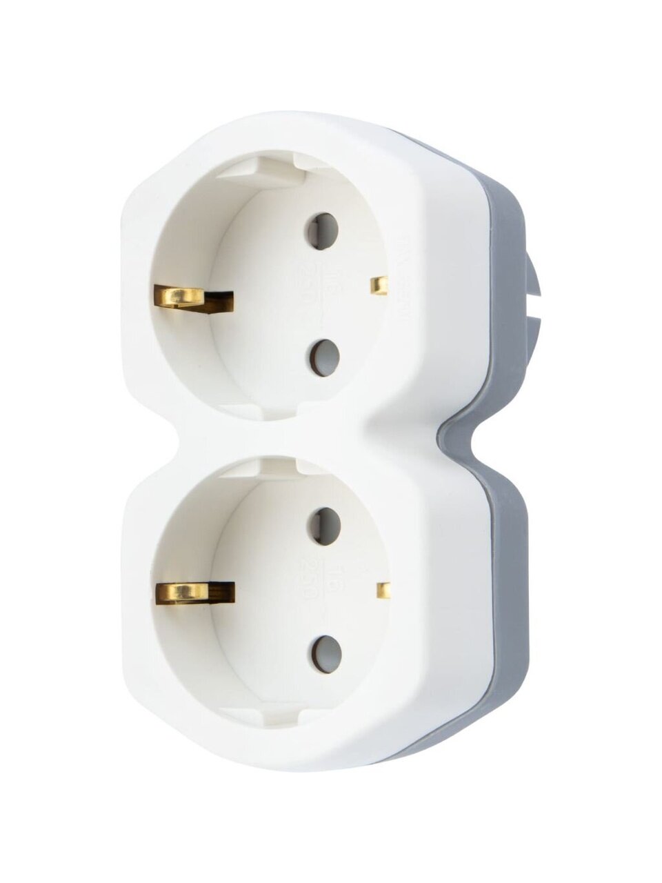 Электрический двойник предназначен для одновременного подключения к электрическим сетям с напряжением 220 В сразу двух приборов. Розетки обеспечивают плотное обжатие присоединяемых вилок за счет упругих пластин контактной группы адаптера. Двойник можно использовать в помещениях, где могут находиться маленькие дети, так как шторки надежно блокируют доступ к контактам розетки других мелких предметов: спиц, карандашей, бусин и др.