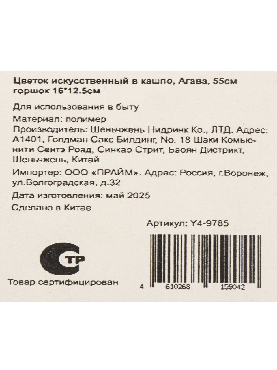 Вы можете приобрести «Цветок искусственный в кашпо Агава, горшок 16х12.5 см, 55 см, Y4-9785» и другие товары в нашем интернет-магазине в Обнинске по низким ценам и с бесплатным самовывозом.