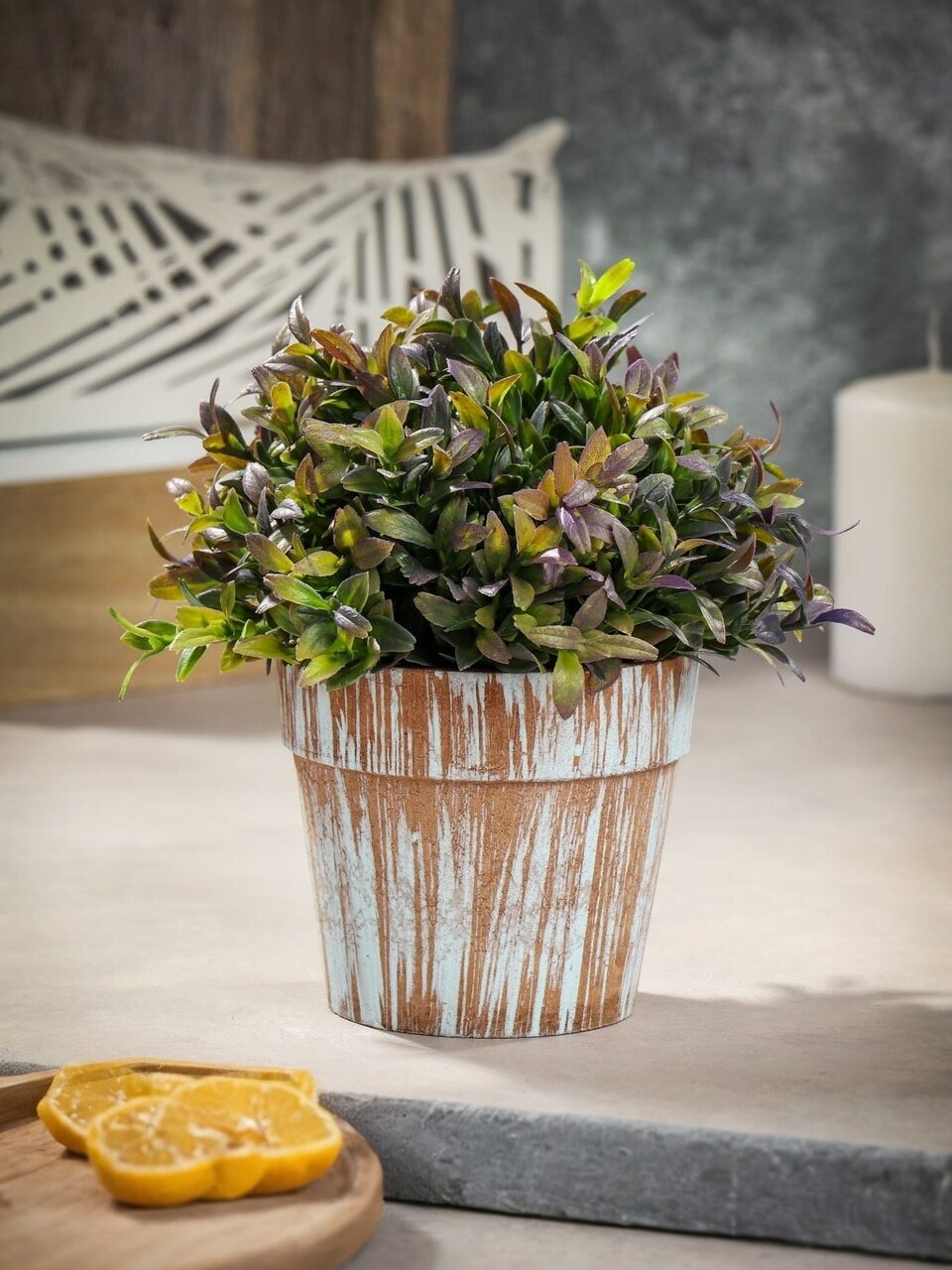 Искусственные цветы - это популярное дизайнерское решение для создания природного колорита и гармонии в пространстве. Композиция из трав в состаренном кашпо в стиле прованс.
