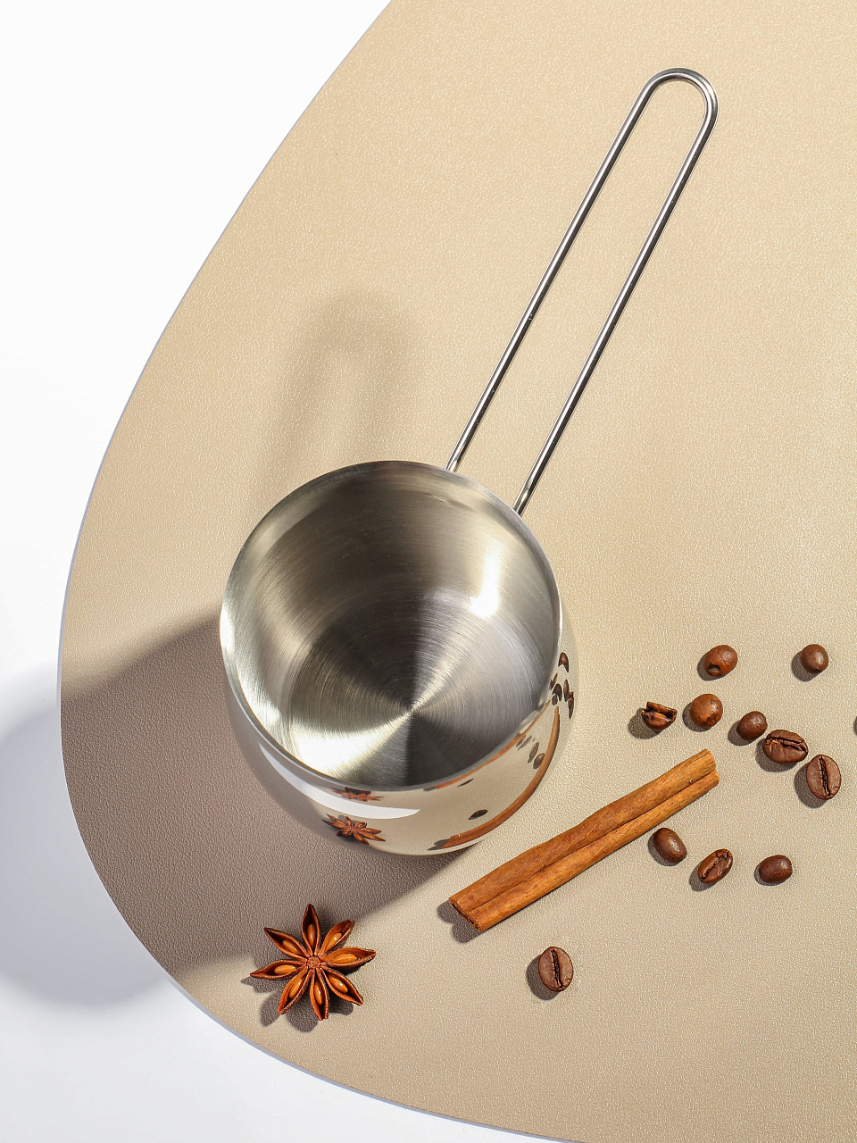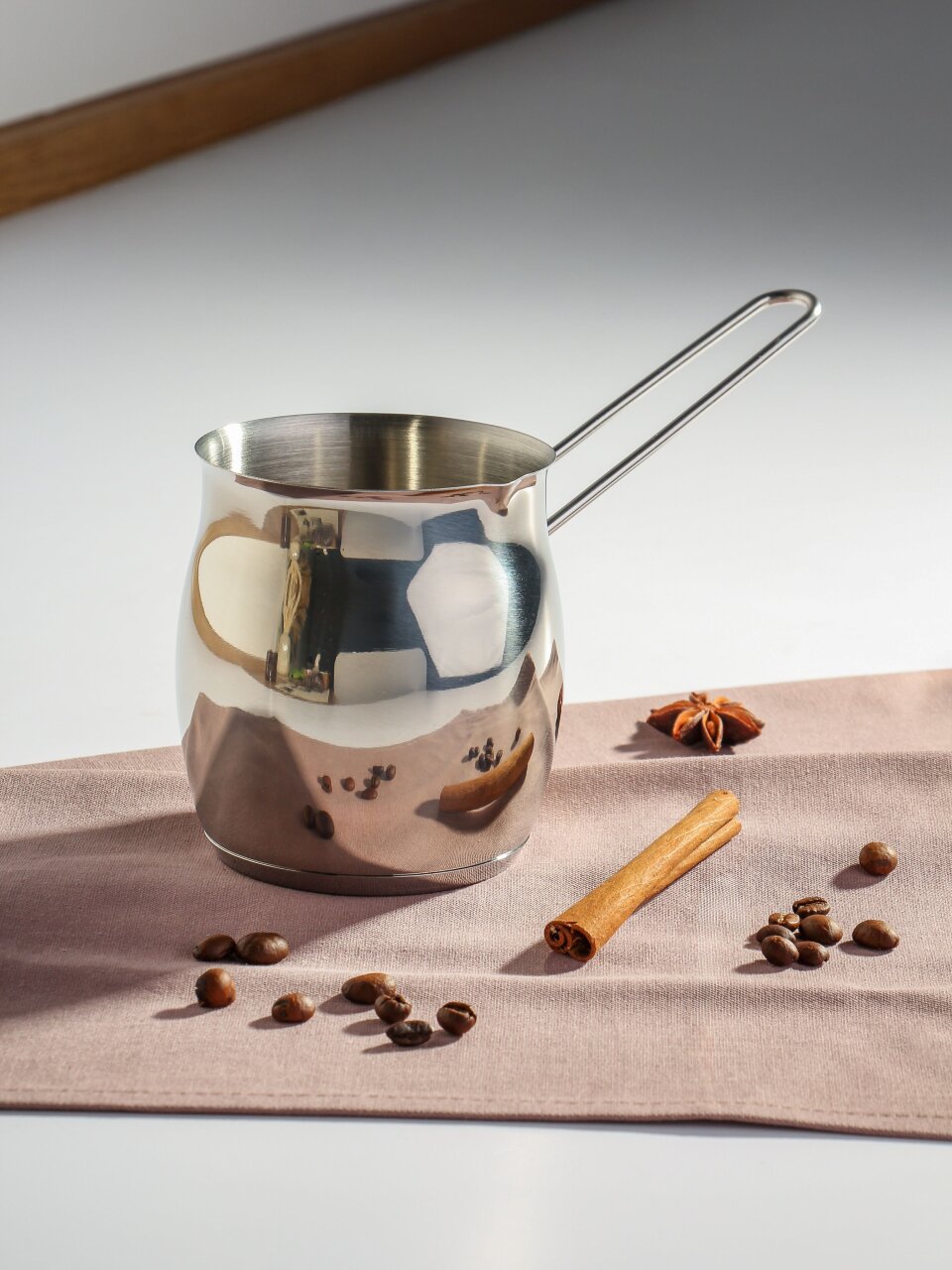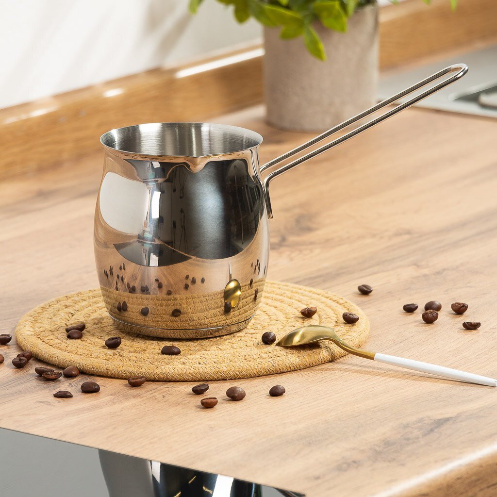 Изготовленная из высококачественной нержавеющей стали, турка объемом 0.6 литра станет вашим незаменимым помощником в приготовлении ароматного кофе. Нержавеющая сталь не только обеспечивает долговечность изделия, но и сохраняет естественный вкус напитка. Металлическая ручка добавляет изысканности и удобства в использовании, а также гарантирует безопасный захват без риска обжечься.