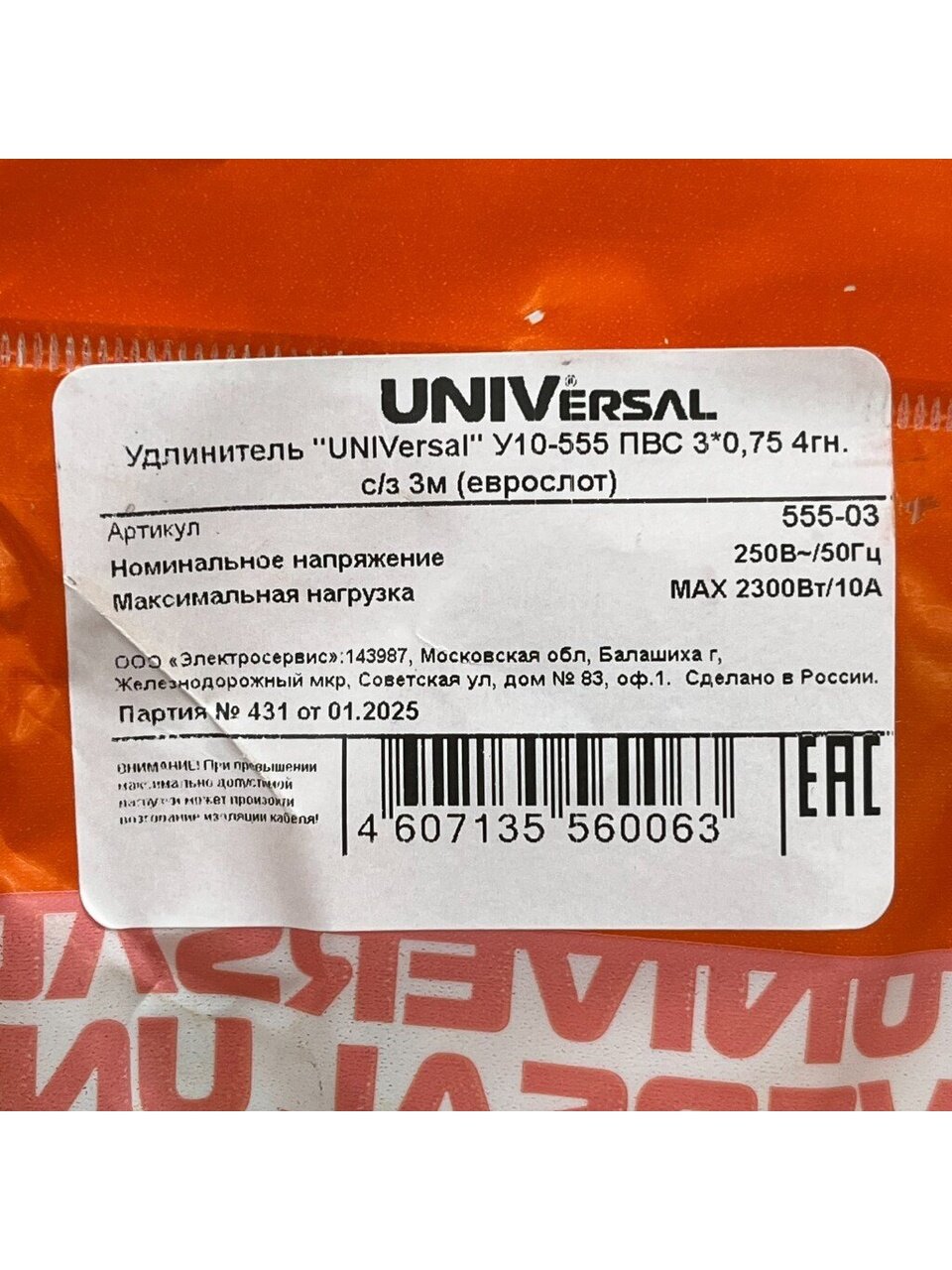 Вы можете приобрести «Удлинитель бытовой 4 гнезда, 3 м, ПВС, 3х0.75 мм², с заземлением, UNIVersal, У10, У10-555» и другие товары в нашем интернет-магазине в Обнинске по низким ценам и с бесплатным самовывозом.