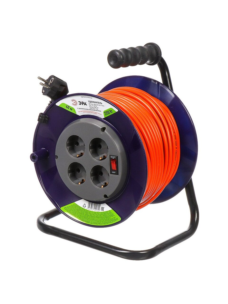 Удлинитель на катушке Эра Б0043055 — надежное решение для организации электропитания на даче, в доме или мастерской. Силовой удлинитель длиной 40 метров с четырьмя розетками обеспечивает комфортное подключение электрических приборов на значительном расстоянии от источника питания. Пластиковая катушка устойчива к механическим воздействиям, а удобная конструкция облегчает перемещение и хранение изделия. Кабель типа ПВС с сечением 3х1 мм² гарантирует стабильную работу даже при длительном использовании, а наличие заземления повышает уровень безопасности при эксплуатации.