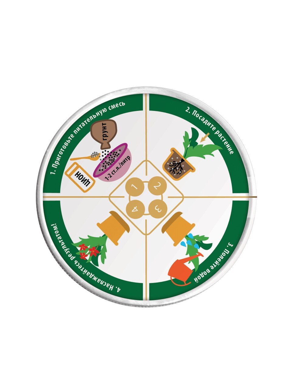 При посадке рассады: перемешайте субстрат Цион с грунтом, посадите растение, полейте водой. Рекомендуемое соотношение: 1-2 столовых ложки на 1 литр грунта.