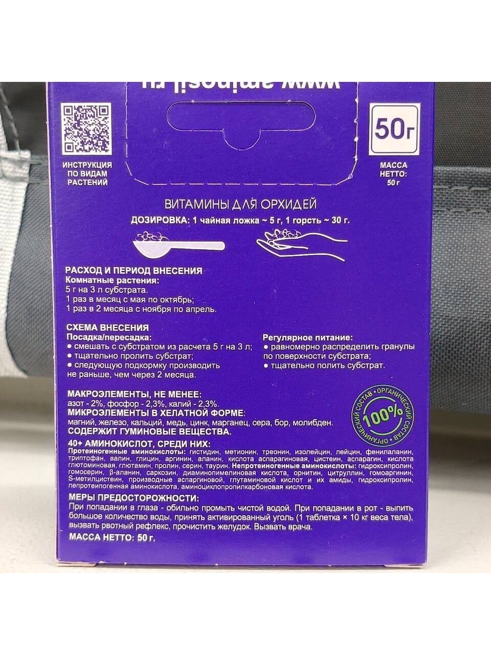- Вес 50 г: оптимален для ухода за орхидеями.