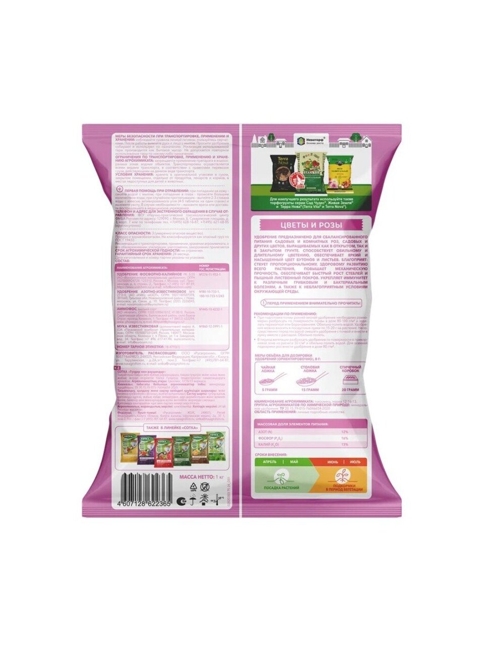 Удобрение Сотка для роз и цветов — идеальный выбор для яркого цветения и здорового роста растений. Пакет 1 кг подходит для регулярного ухода за цветником, обеспечивая эффективное питание и насыщение полезными веществами. Применение удобрения способствует активному развитию и обильному цветению, делая клумбы и розарии более привлекательными.
