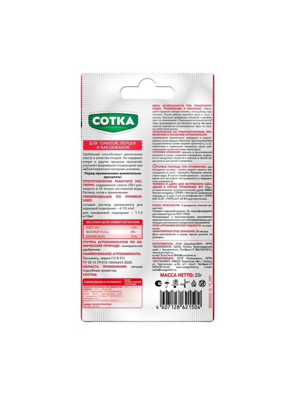 Вы можете приобрести «Удобрение Томаты, перцы, баклажаны, для томатов и перцев, водорастворимое, стик, минеральное, 20 г, Сотка» и другие товары в нашем интернет-магазине в Санкт-Петербургe по низким ценам и с бесплатным самовывозом.