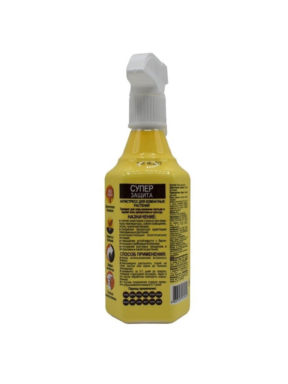 Опрыскивание: Перед использованием встряхнуть флакон. Равномерно распылить спрей на сухие листья или корни до полного смачивания.