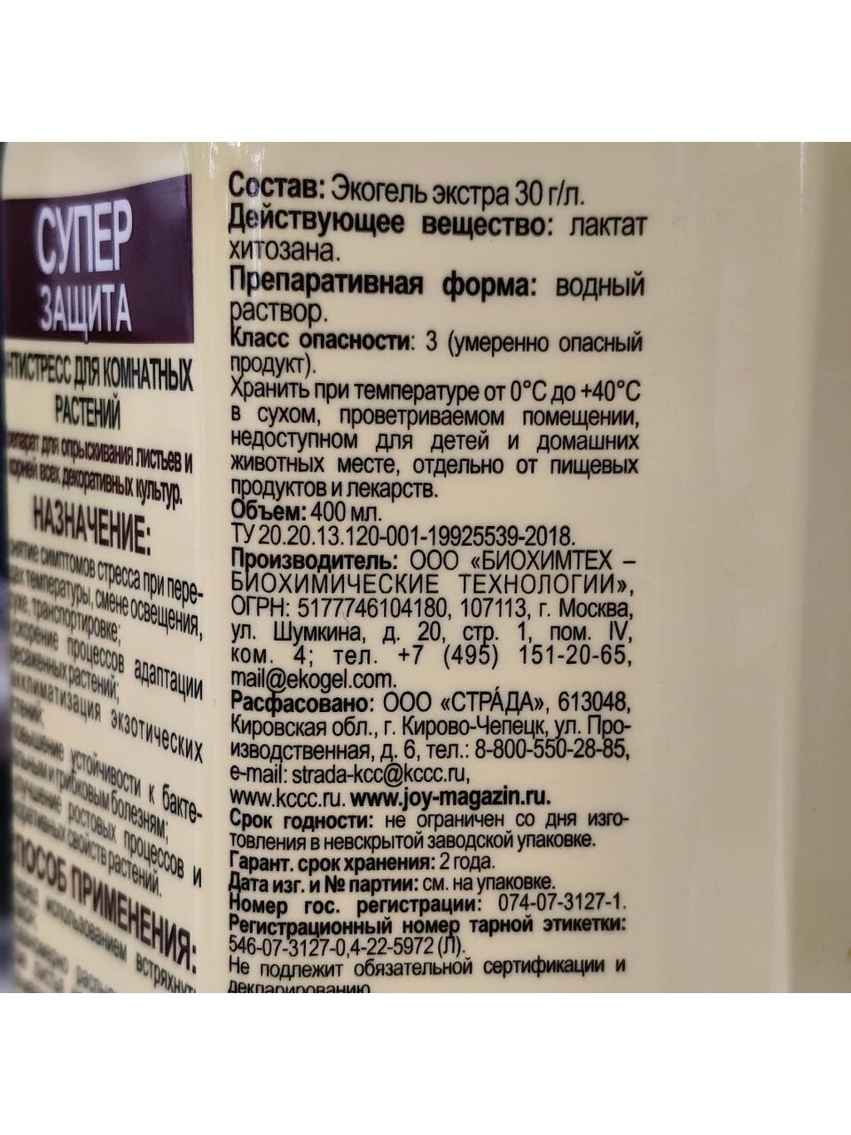 Состав: Действующее вещество: раствор лактата хитозана 0,45г/л