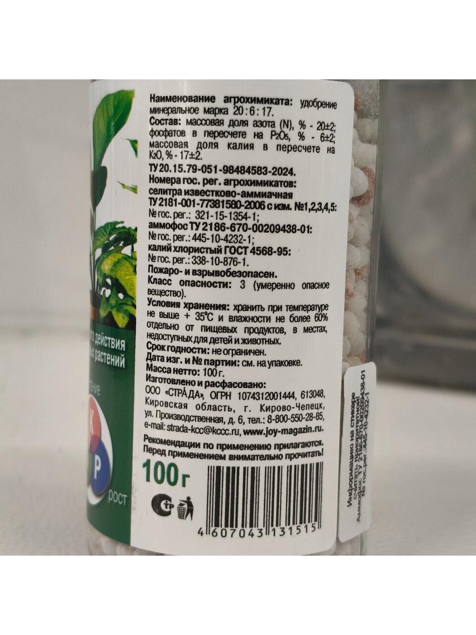 Соотношение NPK: 21,8 : 6,6 : 17,5