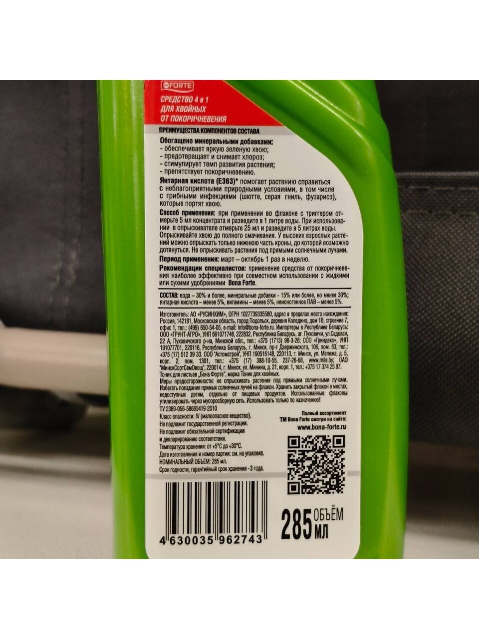 Вы можете приобрести «Удобрение 4в1, от покоричневения хвои, жидкое средство, 285 мл, Bona Forte» и другие товары в нашем интернет-магазине в Клинцах по низким ценам и с бесплатным самовывозом.