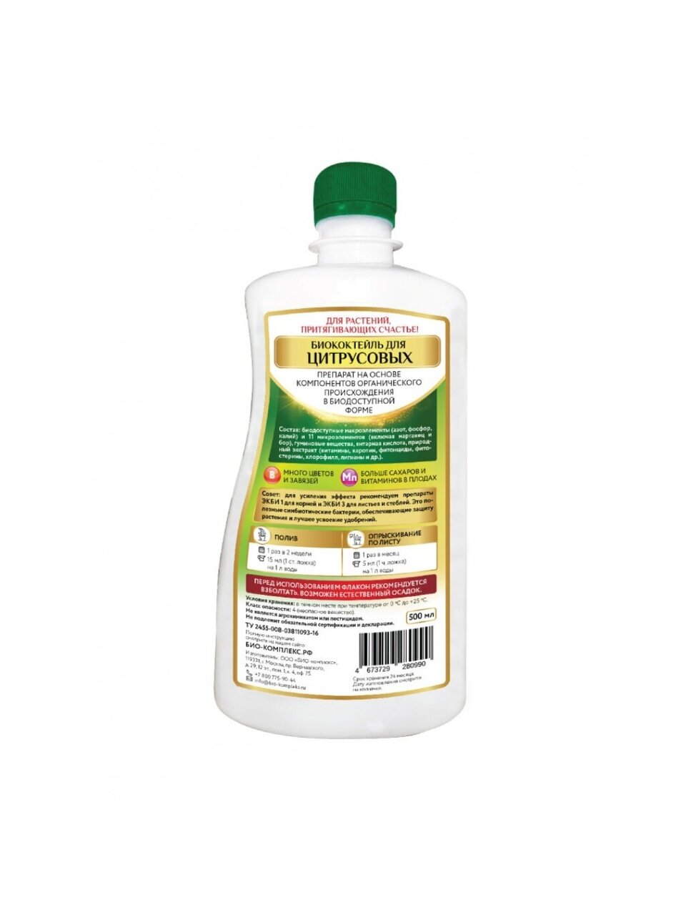 Биококтейль для лимона содержит полный набор легко усваиваемых растением витаминов и микроэлементов в биодоступной форме, с учётом повышенной потребности цитрусовых в боре (В), марганце (Mn) и янтарной кислоте.